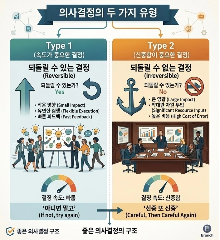 • 되돌릴 수 없는 결정(Type 1)은 느리고 신중하게