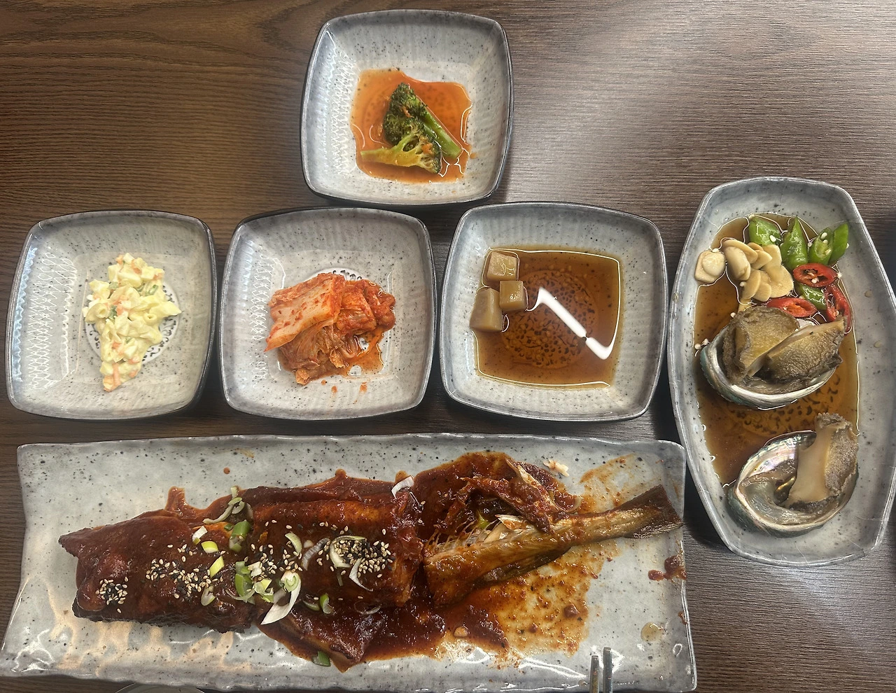 볼락튀김, 전복간장조림.
