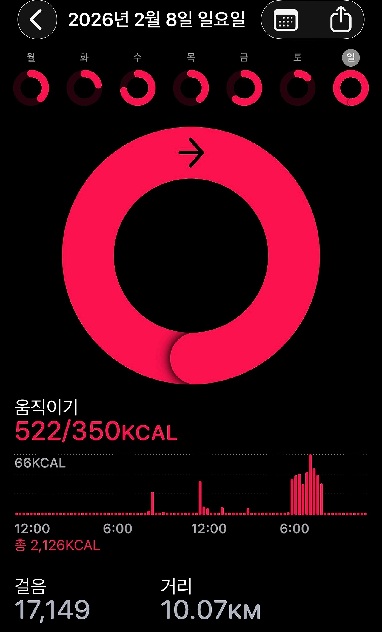 앱으로 운동량을 확인해 보니 제법 걸었구나 싶다.