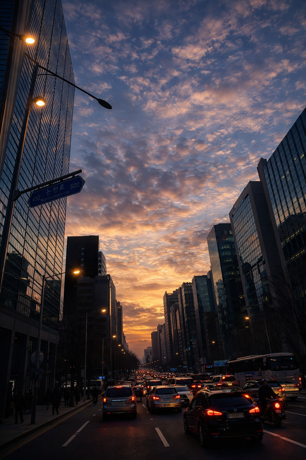 해가 건물 사이로 천천히 내려앉고 있었다.