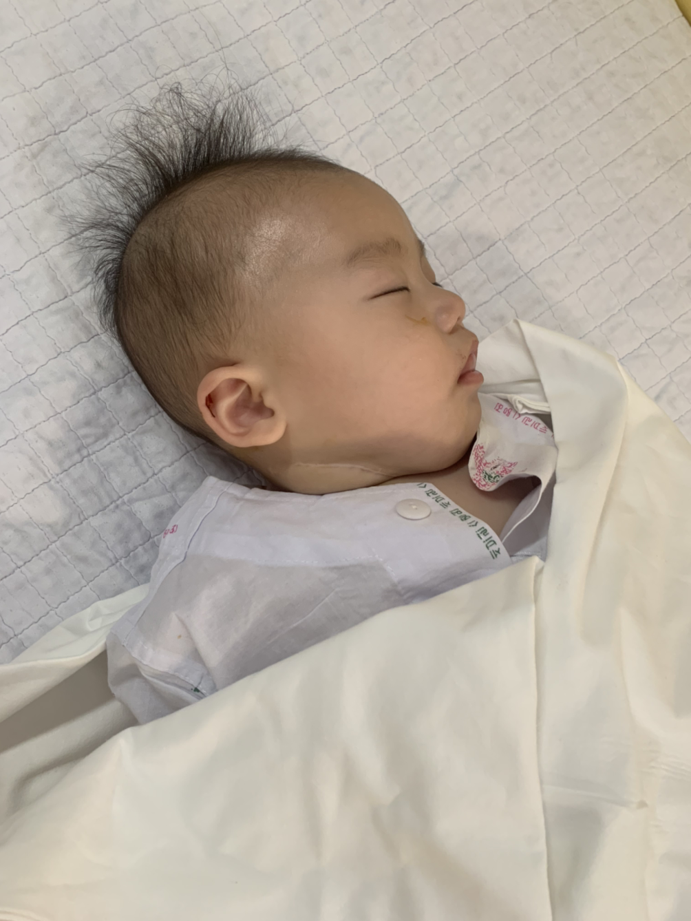 2시간여의 수술을 마치고 아기가 병실로 돌아왔다. 서서히 의식이 돌아오는 아기의 입이 거칠게 말라있었다.