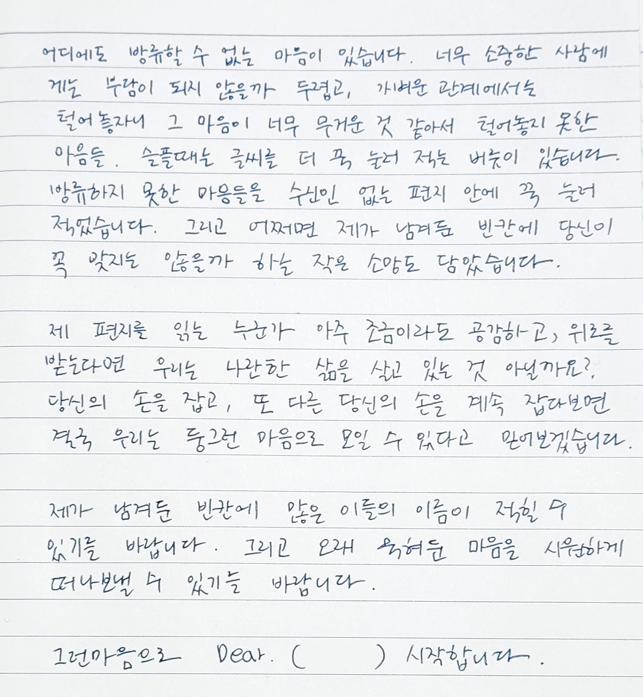 그런 마음으로 Dear. (blank) 시작합니다.