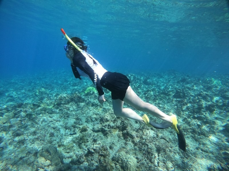 한참 물속 구경에 빠져있던 도중에 현지 가이드가 “구명조끼를 벗고 물 깊숙이 들어 가보지 않을래?”라고 제안하는 것이 아닌가! 깊은 물 속이 두렵지만, 해보고 싶었다. 지금이 아니면 할 수 없을 거라는 생각이 들었다. 그래서 덥석 “YES!”를 외쳤다.
