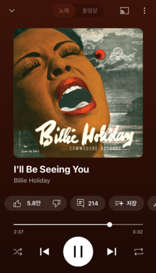 Billie Holiday의 I'll be seeing you 들으며 씁니다.