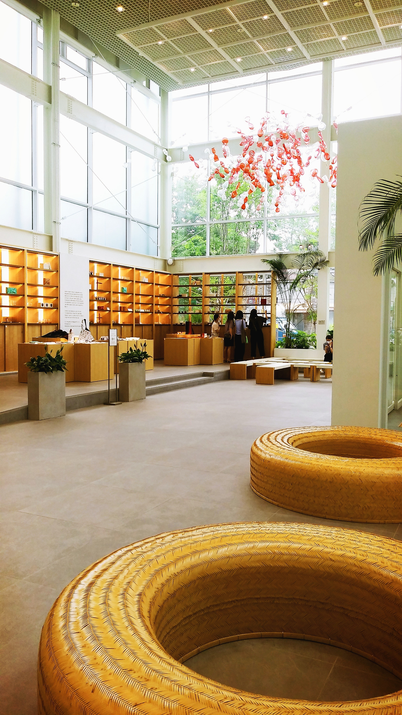 먼저 안내동을 들렀다. 대략의 구조를 파악하기 위해서였다. 안내동은 유리 통창과 높은 천장, 백색과 대나무 색상이 어우러져 세련되면서도 따듯함을 선사했는데, 특히 조명, 의자, 안내데스크 등에 쓰인 가구들이 여느 공공 박물관에서는 볼 수 없는 독특함을 자랑했다. 알고 보니 모두 작가들이 만든 공예품이 아닌가!