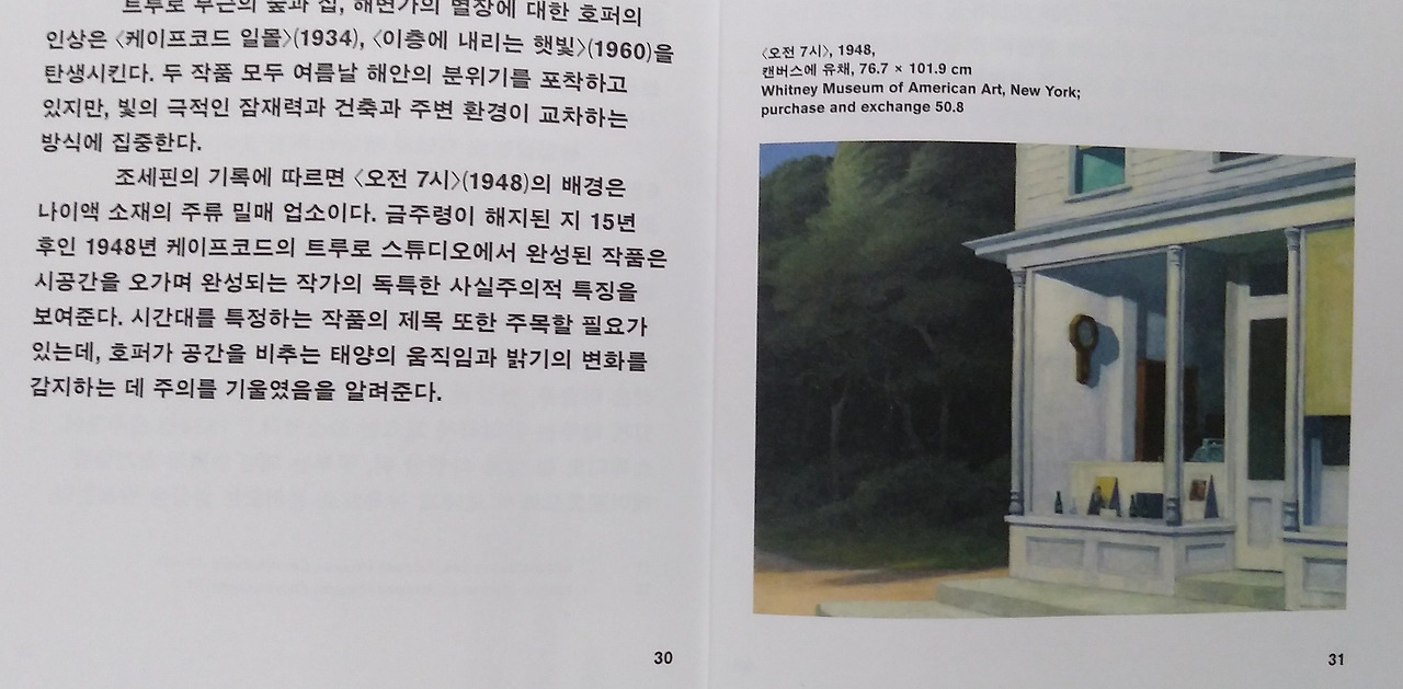 에드워드 호퍼는 내게 각별한 작가다. 그의 작품을 지인에게서 선물로 받았기 때문이기도 하지만 여동생도 좋아하는 작가이기 때문이다. 그래서 여동생과 함께 호퍼의 전시를 찾았다. 각자의 집에 걸어둔 <바다 옆 방>의 원본을 보고 싶어서. 하지만 희한하게도 그 그림은 전시회에 나와 있지 않았다. 동생도 나도 아쉬운 마음이 너무 컸다.