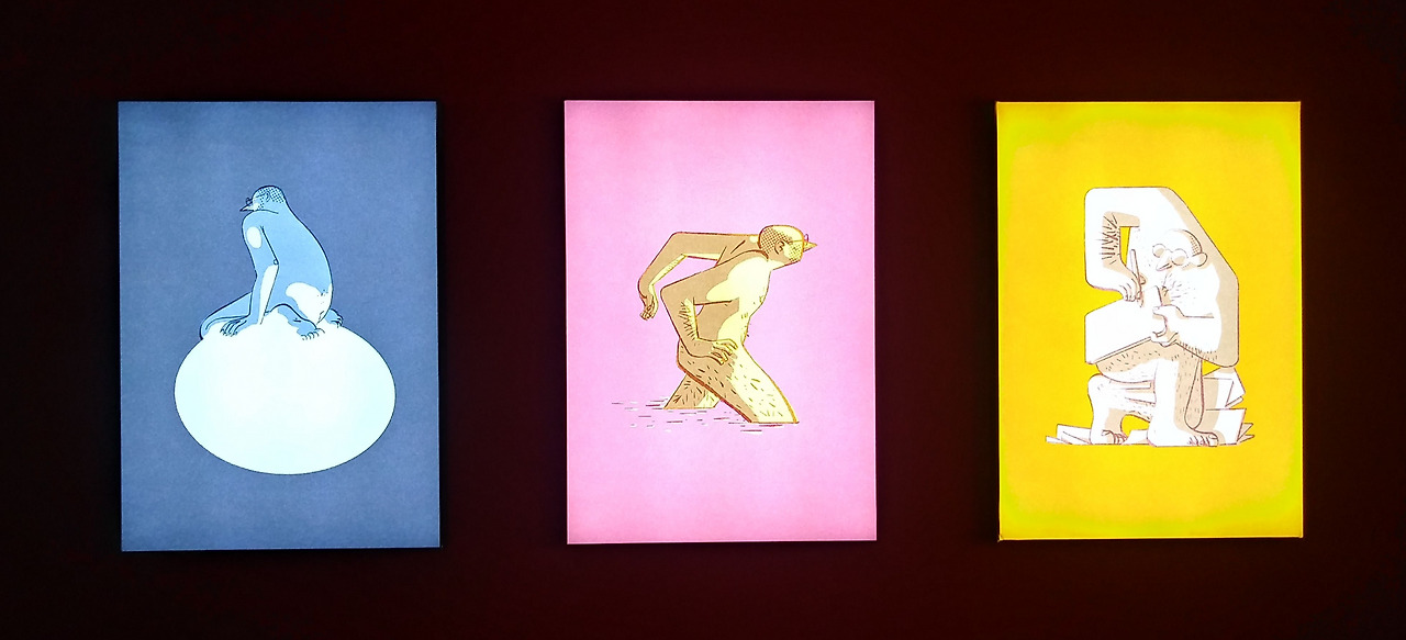 2층에서는 작가 소개 영상과 자화상, 단칸짜리 작업실에서 탄생했다는 방대한 양의 습작품들과 메모를 만날 수 있었다. 익살스럽고 유쾌한 그림을 들여다보는 재미가 쏠쏠하다. 그 외에도 아이패드와 관련한 이야기들을 접할 수 있었는데, 디지털이 주는 자유로움 때문에 "다시 스케치북으로 돌아갈 수 없다"는 작가의 고백이 흥미로웠다.