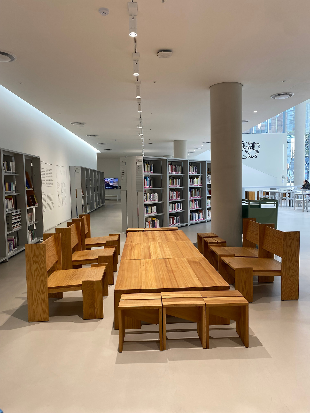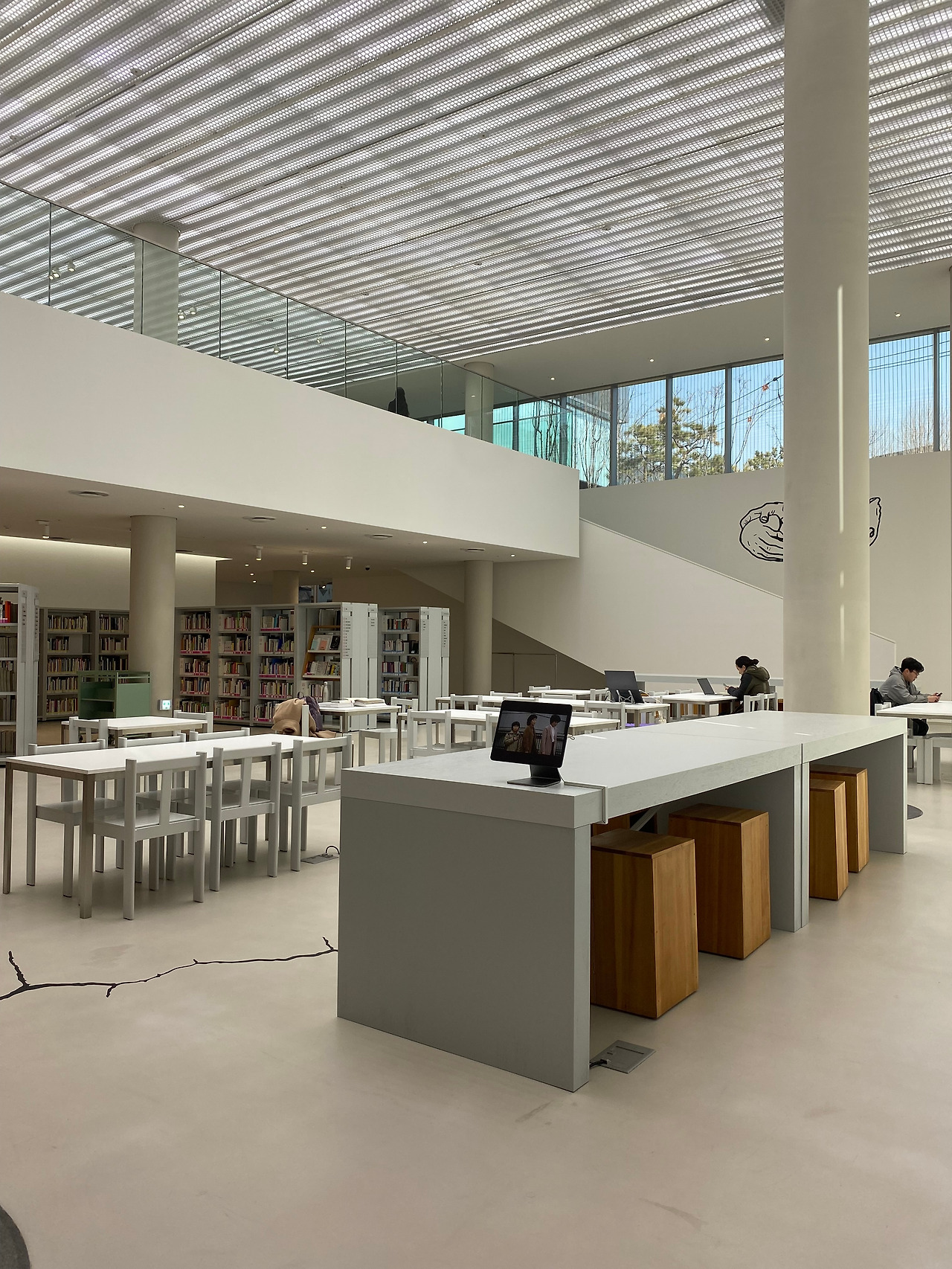 3개의 건물(배움동, 모음동, 나눔동)도 도로를 끼고 각각 흩어져 있어 한 번에 공간을 누리지 못하는 아쉬움이 있다. 하지만 전시가 열리는 모음동에는 근사한 도서관이 있다. 4500여 권에 달하는 시각예술 분야 도서를 보유한 도서관은 2층까지 천장이 열려 있어 개방감이 탁월하다.