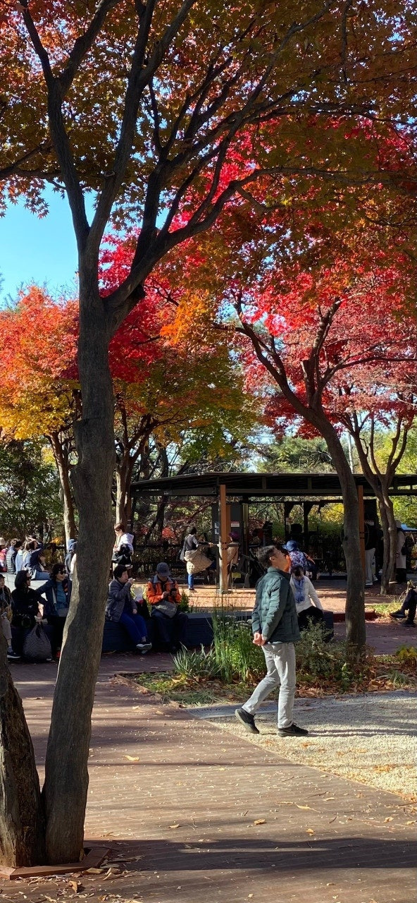 숲길을 오르는 동안 곳곳의 단풍을 보자 탄성이 절로 터져 나왔다. 단풍은 카메라에 그 빛깔을 온전히 담을 수 없을 만큼 여전히 붉었다. 남편은 나뭇잎이 많이 떨어졌다며 아쉬움을 나타냈지만 이제야 단풍을 만끽하는 입장에서는 사라지지 않은 그 빛깔에 그저 감탄만 연발했다. 도심에서 단풍 삼매경에 빠진 날로 기억될 만한 특별한 순간이었다.
