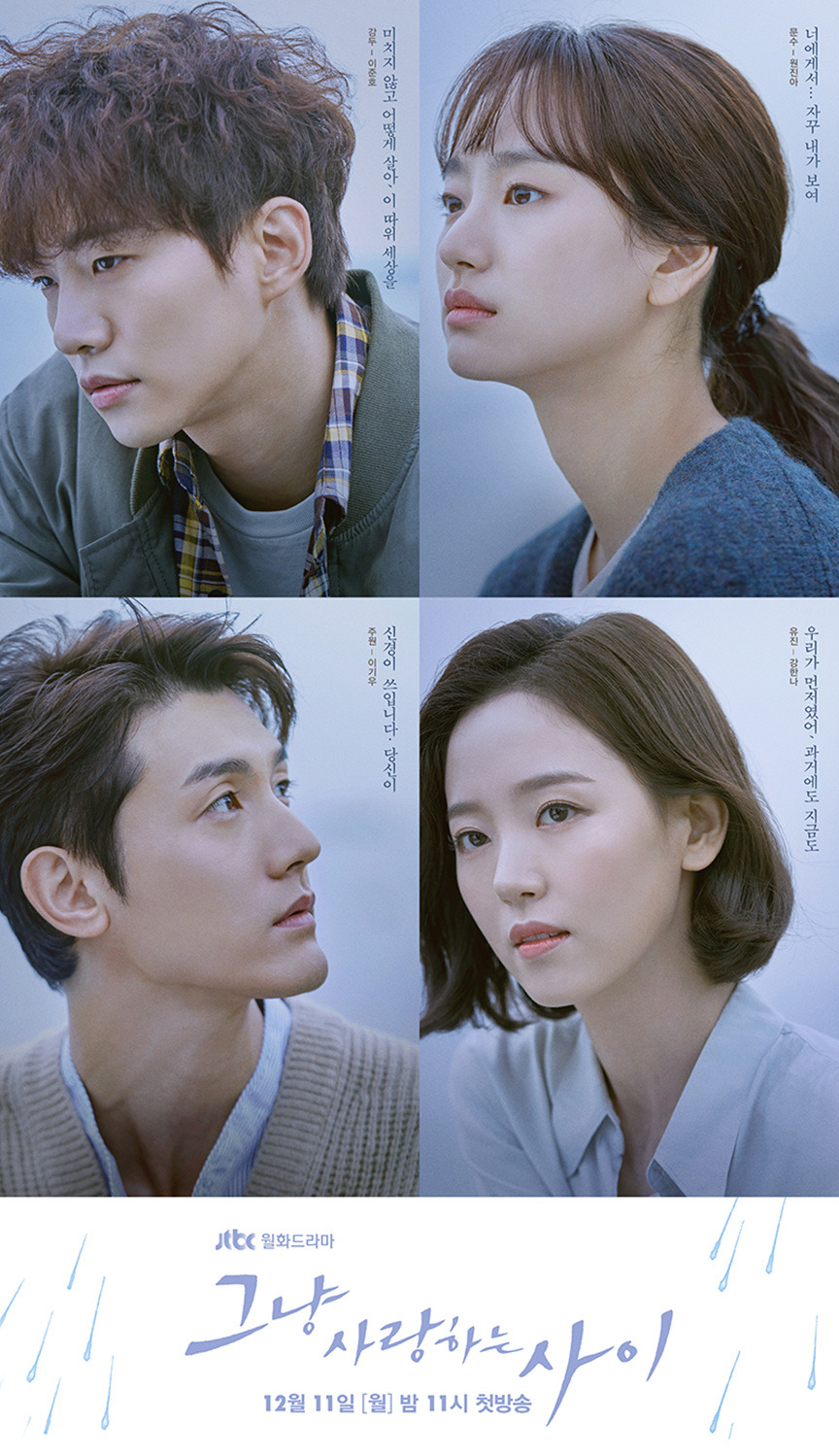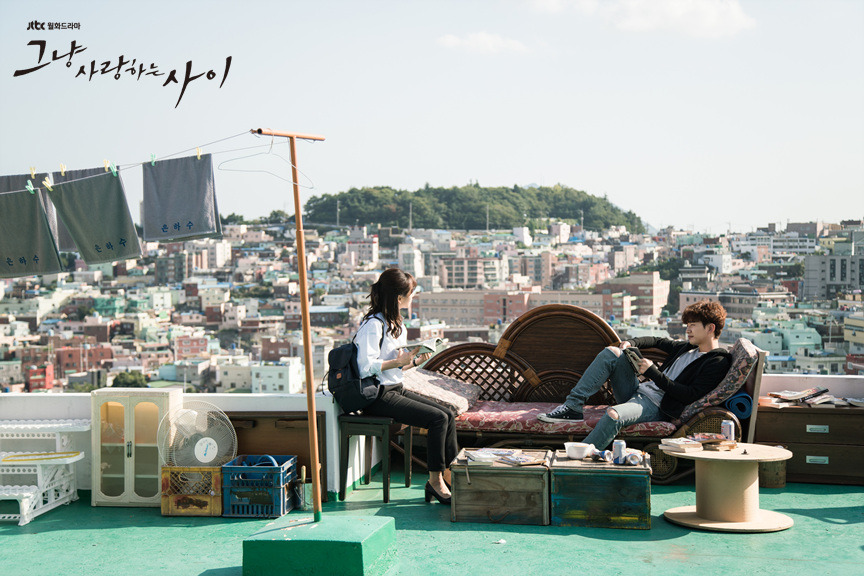 <그냥 사랑하는 사이>가 시작하기 전 서정적인 분위기를 마구 풍기는 포스터를 보고 이 드라마를 기대작으로 뽑았다. 이때 다른 사람들은 주인공들이 너무 약하지 않느냐 너무 잔잔한 스토리일 것 같지 않느냐고 말했다.