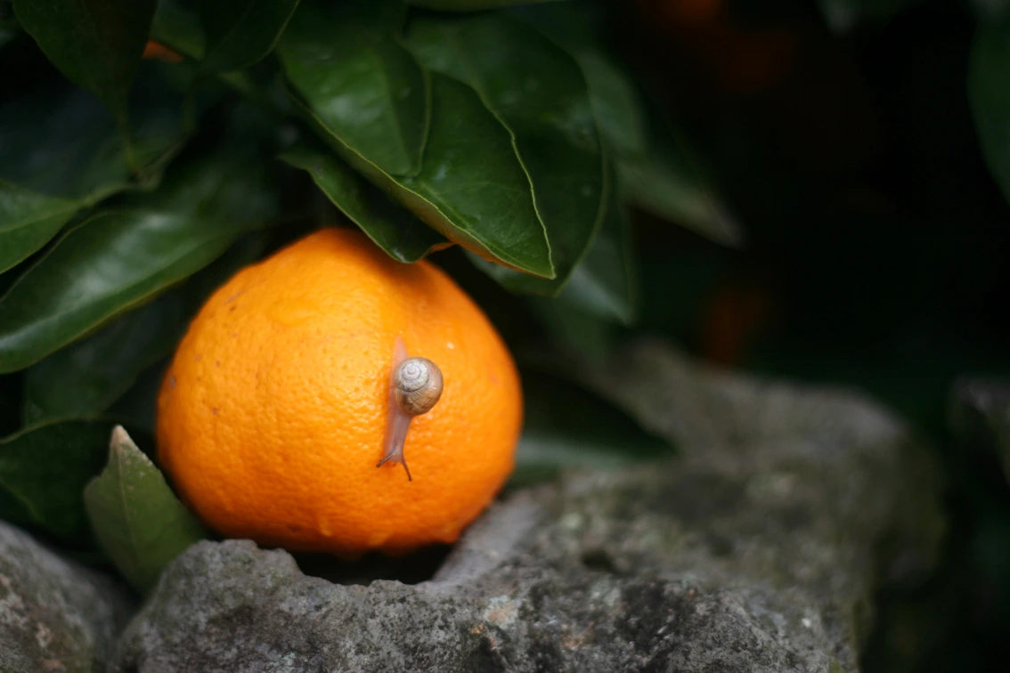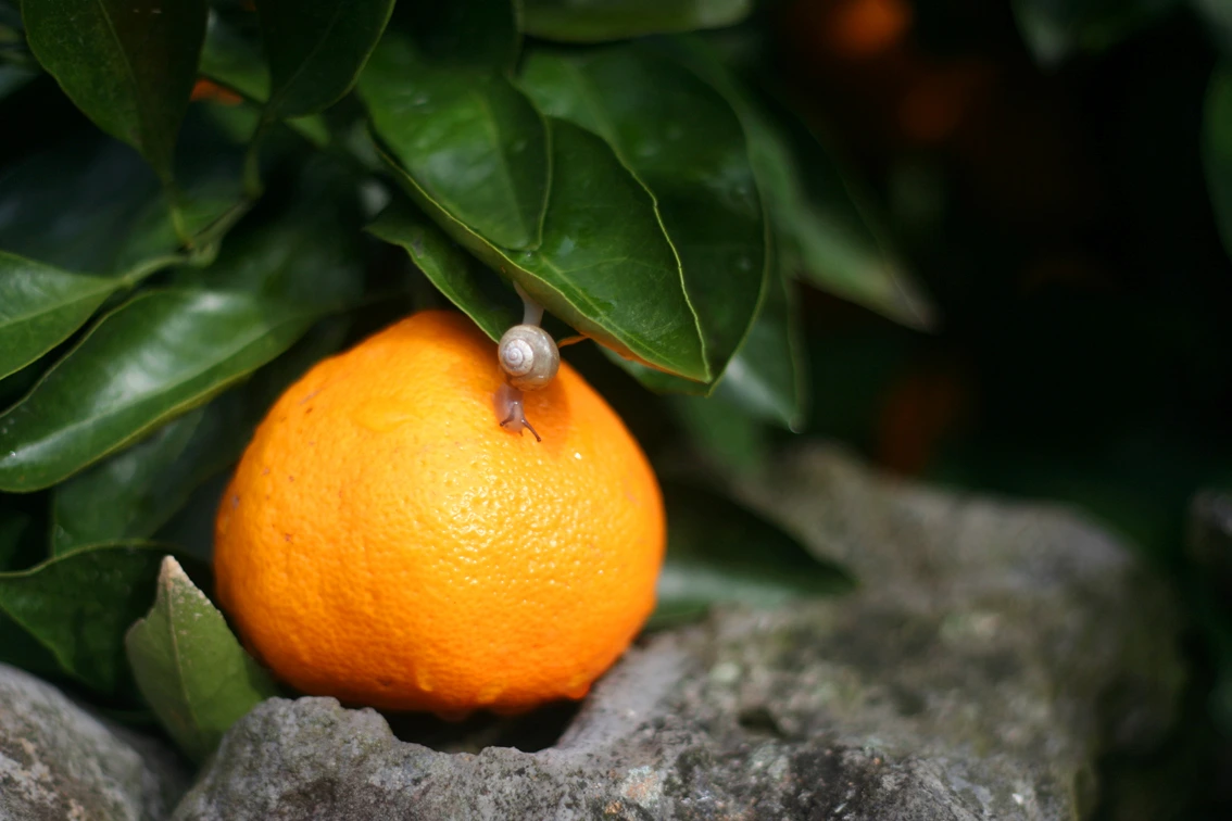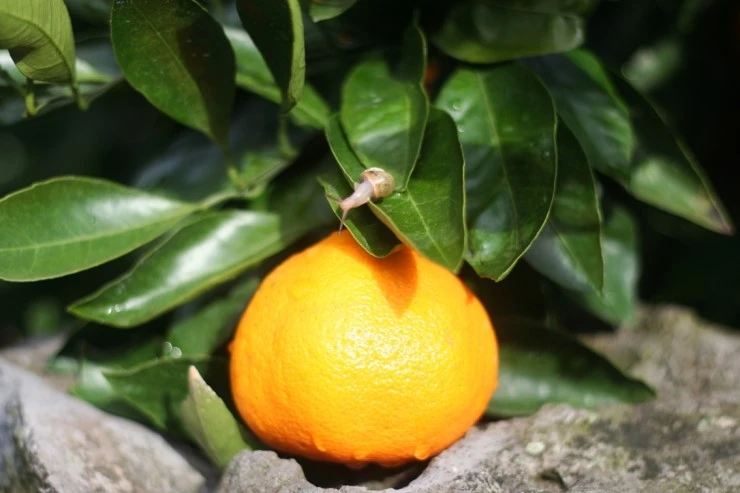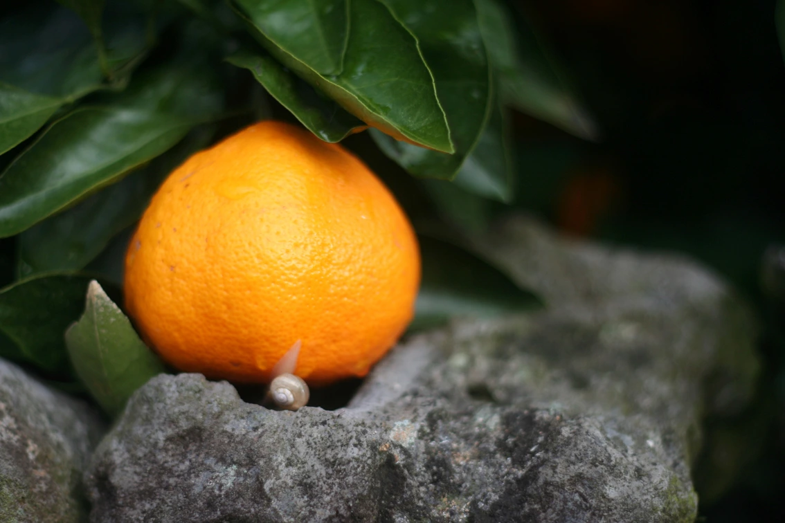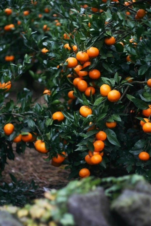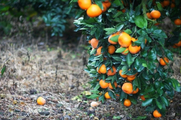 나무 그늘 아래에서 노란 귤은 더욱 빛나는 법.