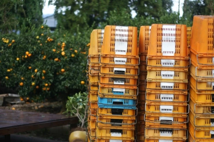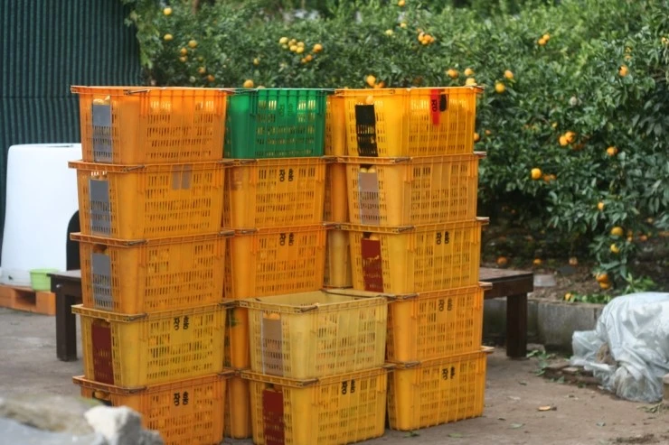 아침 일찍 마당이 소란스러워 나와보니 귤을 싣고 갈 컨테이너가 쌓여있다.