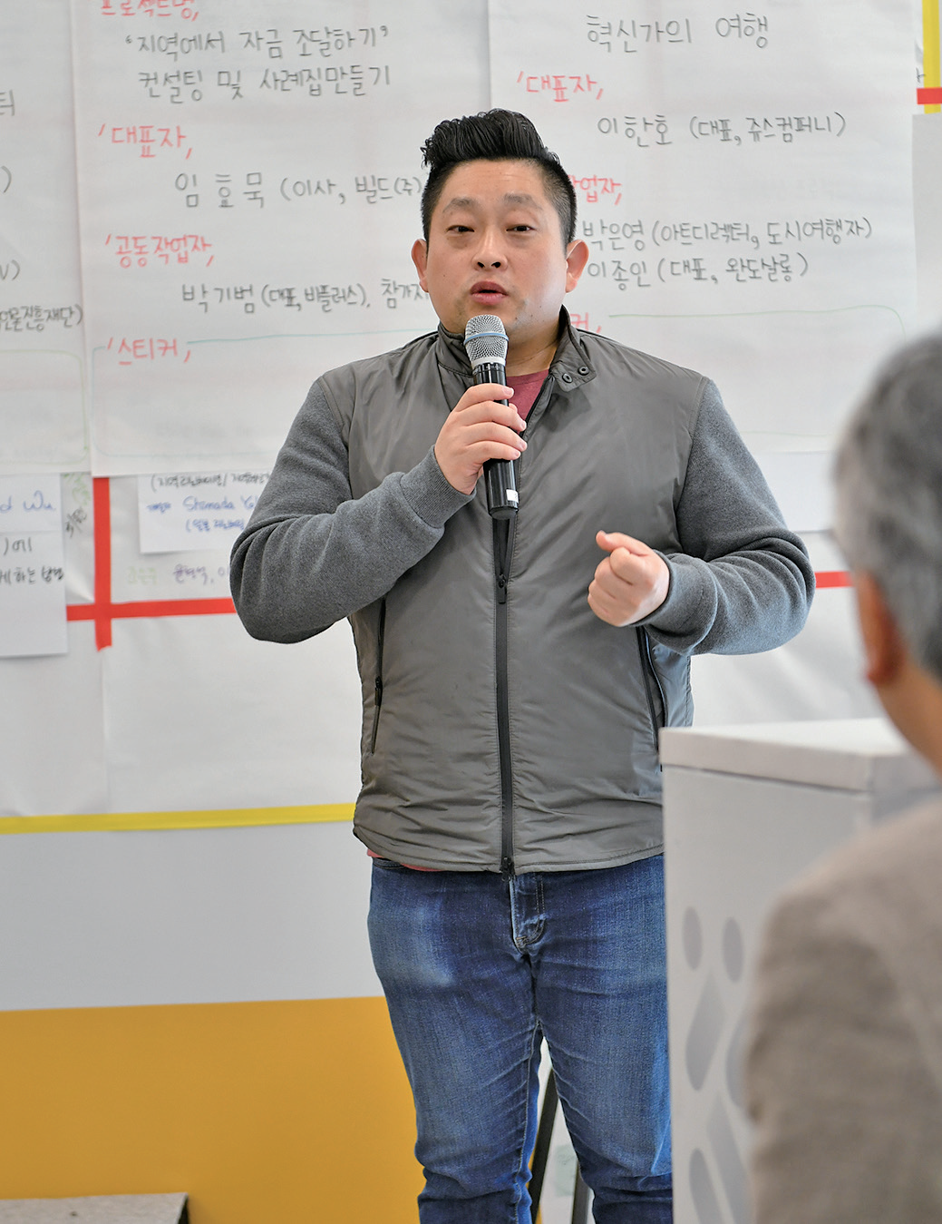 프로젝트 ‘혁신가의 여행’은 ‘혁신가들과 함께 지역 혁신의 현장을 여행한다’를 콘셉트로 한 로드트립 프로젝트이다. 발표를 맡은 박은영 아트디렉터는 “지난 10월 순천에서 열린 ‘문화가 있는 날’에서 이한호 대표와 만났었는데, 당시 지역에서 공간을 운영하는 친구들끼리 여행을 콘텐츠로 프로젝트를 만들어 보자고 이야기했었다. 그리고 한 달 뒤 제주에서 다시 만나면서 이 프로젝트를 구체화하기 시작했다”며 “혁신가의 여행은 혁신가들과 함께 지역 혁신의 현장을 여행한다를 콘셉트로 참가자를 모으고, ‘당신의 여행이 지역 혁신의 한걸음이 된다’는 것을 홍보할 것”이라고 설명했다.