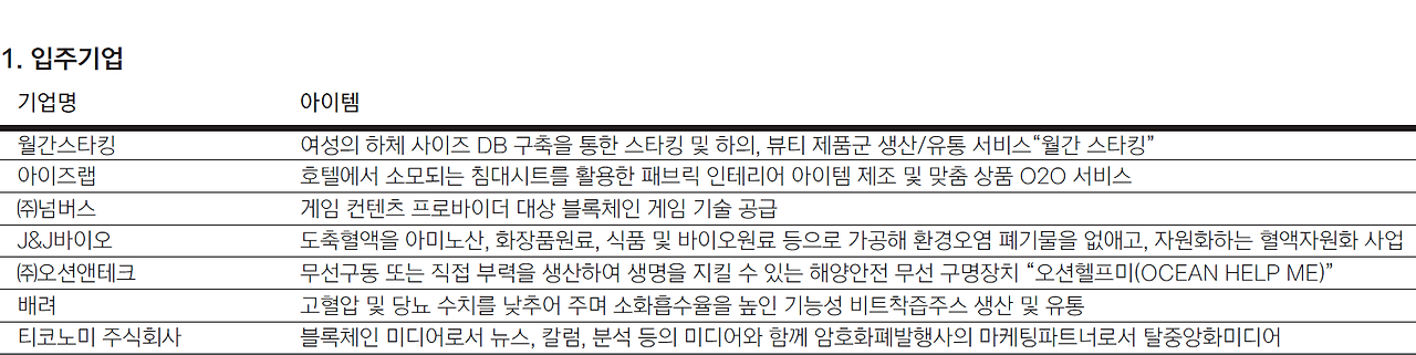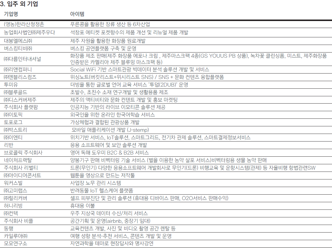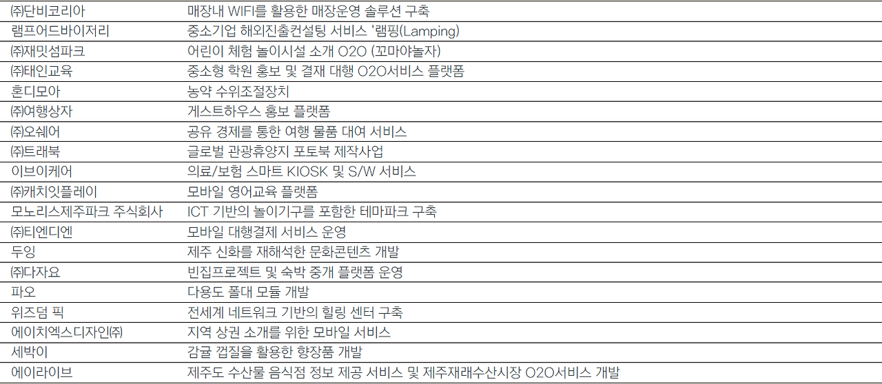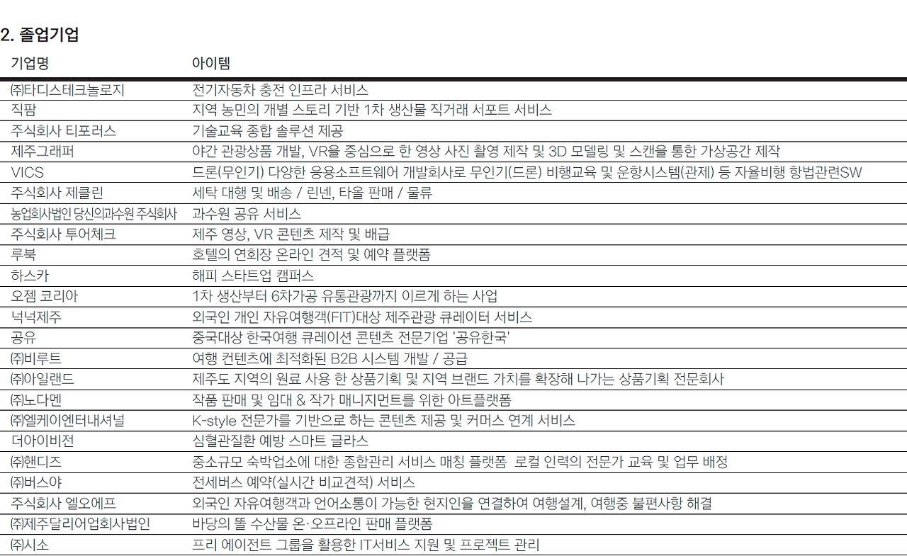 현재 입주 중인 기업부터 졸업기업, 그리고 입주 외 기업들까지 제주 혁신센터를 거쳐간 보육기업들을 소개한다.