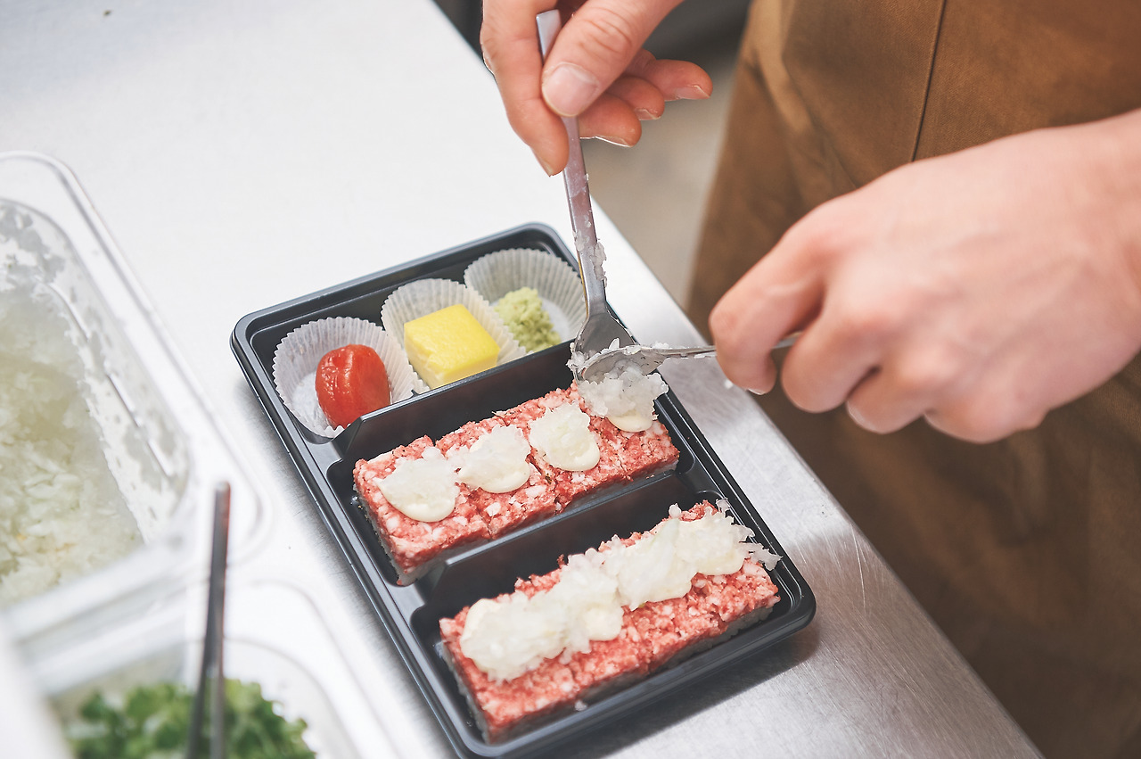 말고기연구소를 대표하는 양대산맥인 소시지와 육회초밥은 그 이름에서 알 수 있듯 말고기를 주제로 한 새로운 형태의 음식입니다. 소시지의 경우 전문가들의 ‘불가능하다’는 의견을 이겨내고 100% 말고기만을 사용한 제품을 개발하는데 성공했어요. 불포화지방산을 다량 함유한 말고기의 풍부한 육즙을 살리기 위해 오랜 연구개발 끝에 거둔 쾌거였습니다.