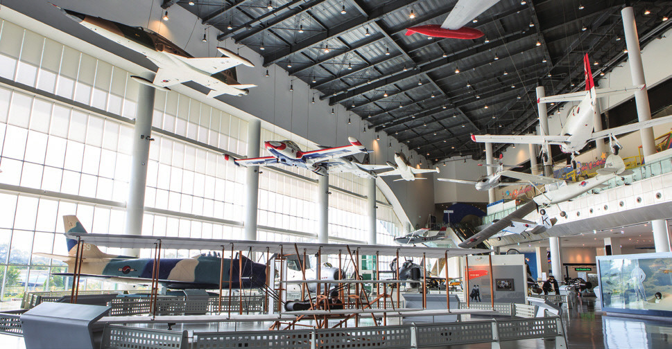 박물관에 도착했다면 가장 먼저 둘러봐야 할 곳은 단연 ‘항공역사관’과 ‘에어홀’이다. 1층에서 시작하는 항공역사관에서는 하늘을 날고자 했던 인간의 꿈과 도전의 역사부터 항공산업의 미래까지 엿볼 수 있다. 이어지는 에어홀에서는 30m 높이의 천장에 실제 항공기와 똑같은 모습의 비행기 모형이 하늘을 날아다니는 듯한 느낌을 자아낸다.