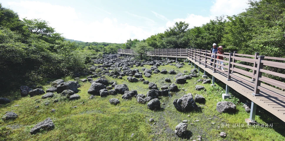 삼다수목장 근처에는 아름다운 길도 있어 지루할 틈이 없다. 입구에서 10분 정도 쭉 걸어 나와 작은 도로를 건너면 약 200m 길이의 숨겨진 사진 명소, 샤이니숲길을 만날 수 있다. 마치 미지의 세계로 가는 길처럼 양쪽에 곧게 뻗은 나무와 낮은 돌담이 끝없이 이어져 다른 세상에 온 것 같은 기분을 느끼게 한다.
