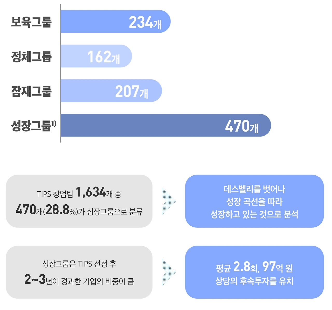 1) 성장그룹: TIPS 선정 이후 총 10억 원 이상의 후속투자를 유치한 창업팀