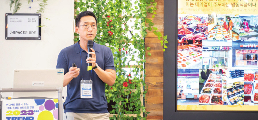 2023년 7월 27일 제주창조경제혁신센터 J-Space에서 스타트업 업계의 최신 트렌드와 인사이트를 전하는 ‘2023 제4회 TREND TALK’가 열렸다. 우리나라 스타트업 최초로 해외 매각 사례를 이뤄낸 퓨처플레이 류중희 대표가 ‘푸드테크 산업 트렌드와 제주의 로컬 비즈니스’라는 주제의 강연을 통해 '투자자'의 관점에서 바라본 F&B 생태계 시사점과 인사이트 공유에 나섰다. 그는 앞으로의 산업을 읽기 위한 5가지 트렌드를 펼쳐 보였다.