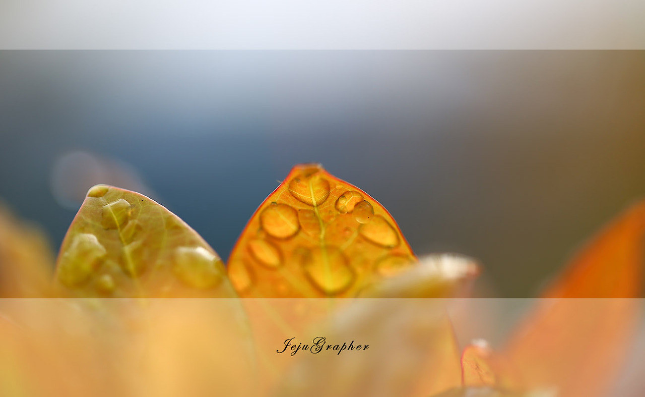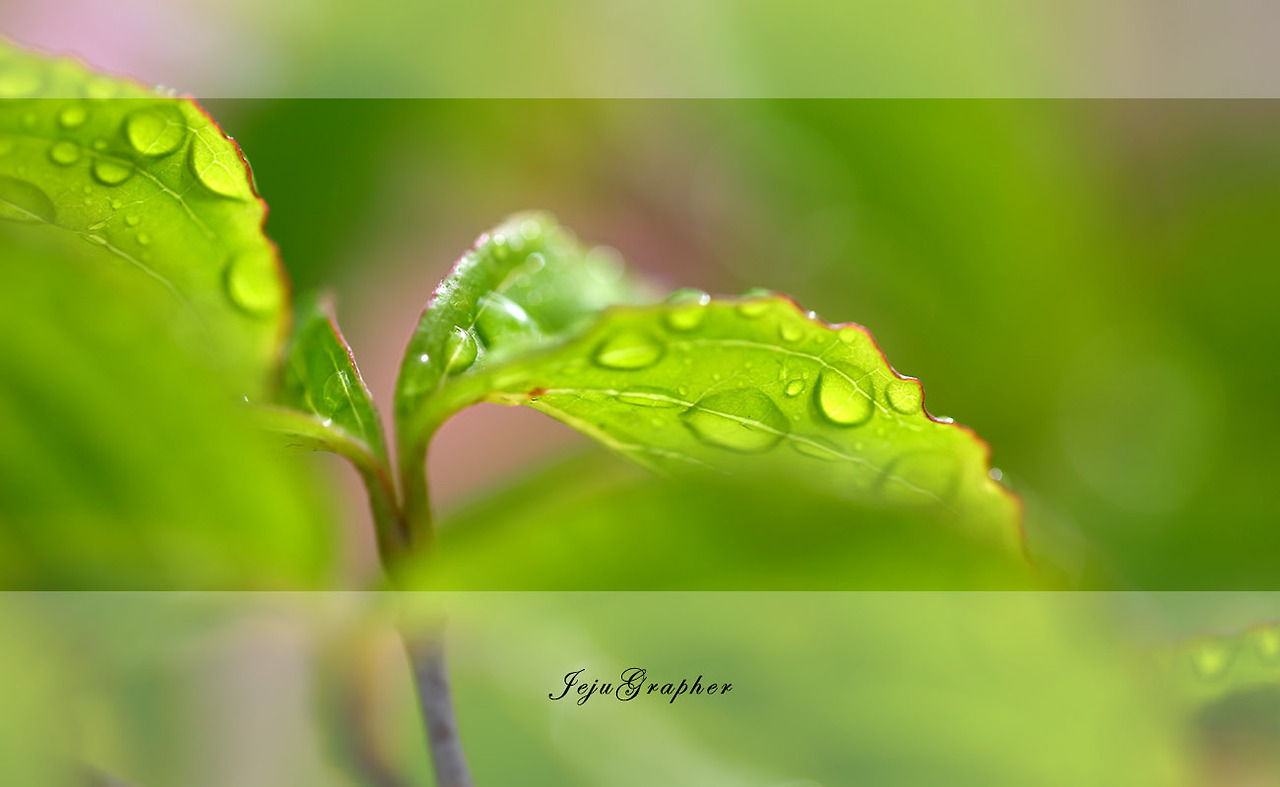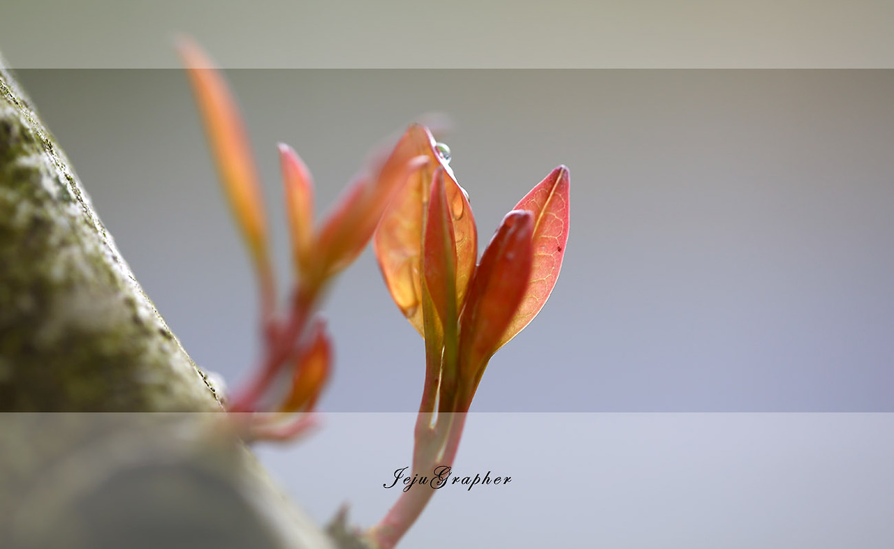지난밤에 방에서 대강 몇 컷을 찍었지만, 사실상 첫 컷은 빗방울이 고여있는 나무의 새삭입니다.