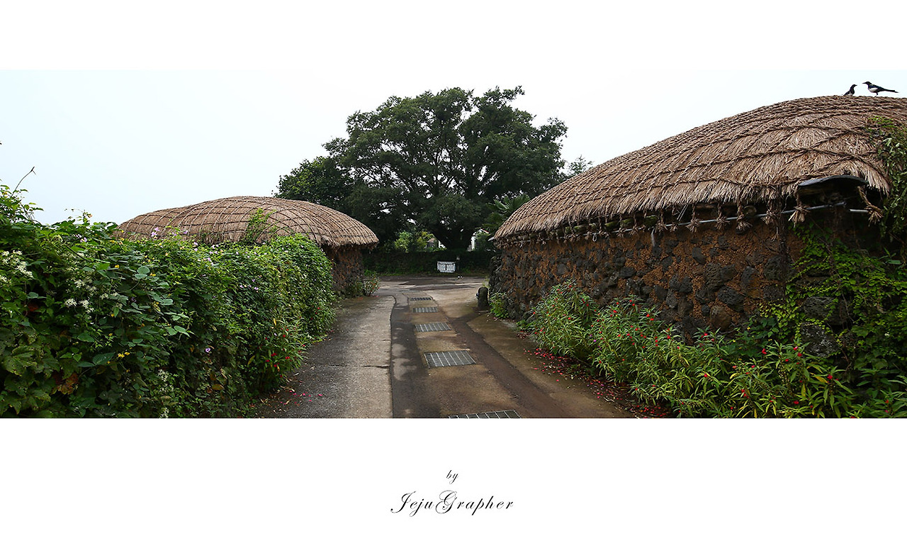 사진을 편집하면서 처음에는 골목길에 핀 봉숭아를 중심으로 크롭 하려고 했었다. 그런데 초가 위에 까치 한 쌍이 있는 것을 보고 까치를 살리는 방향으로 크롭했다. 사실 까치는 제주의 새가 아니다. 까마귀가 제주의 새다. 원래 제주에는 까치가 살고 있지 않았는데, 십수 년 전에 어느 대기업(아시아나)가 행사를 하면서 까치 몇 마리를 방사했던 것이 번식을 거듭해서 제주도 전역을 뒤덮었다. 원래 제주를 지키던 까마귀는 까치의 등살에 밀려나버렸다. 초가지붕 위의 까치 모습이 얼핏 정겹게 여겨지겠지만 제주에서는 이질적인 잘못된 광경이다.