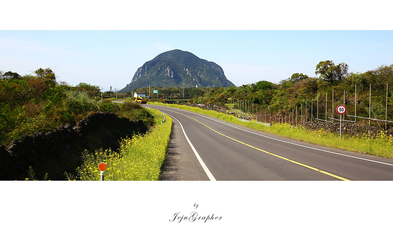 페이스북에서 길가에 멋들어지게 유채꽃이 펴있고 뒤로 산방산이 우뚝 쏟은 사진을 봤다. 바로 이번 주말은 저기에 가자라고 마음을 먹었다. 그렇게 찾아갔던 곳이 위의 사진이다. 유채는 이미 많이 졌고 옆으로 공사하느라 볼품없이 철봉이 세워지고 있었다. 참 아쉬운 순간이었다. 하지만, 양옆으로 곶자왈 트래킹 코스가 있다는 것을 알게 된 개기가 됐고, 2달이 지나서 다시 찾았다.