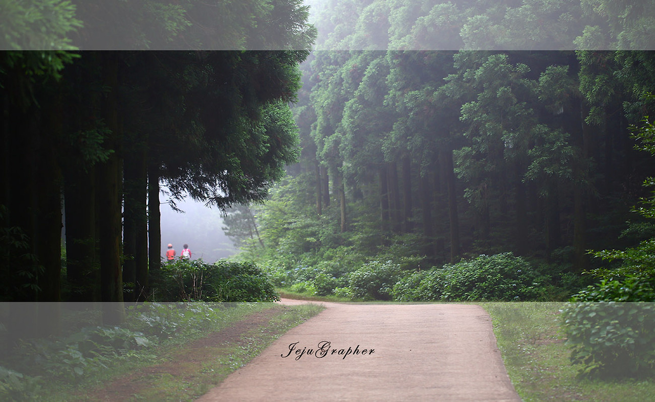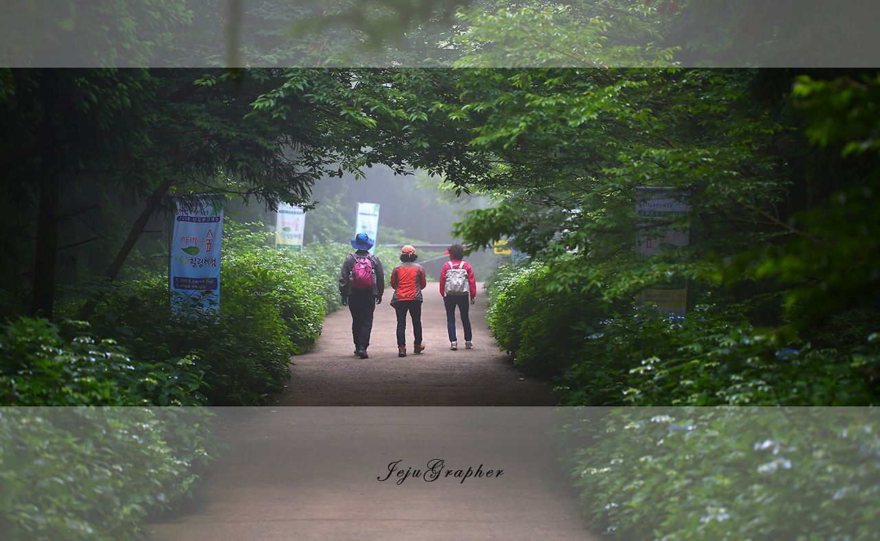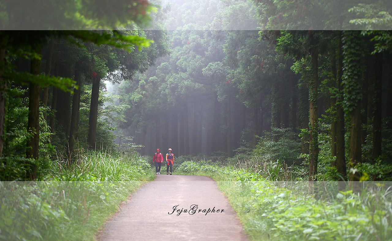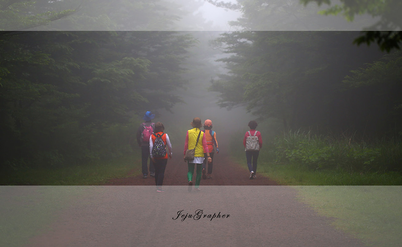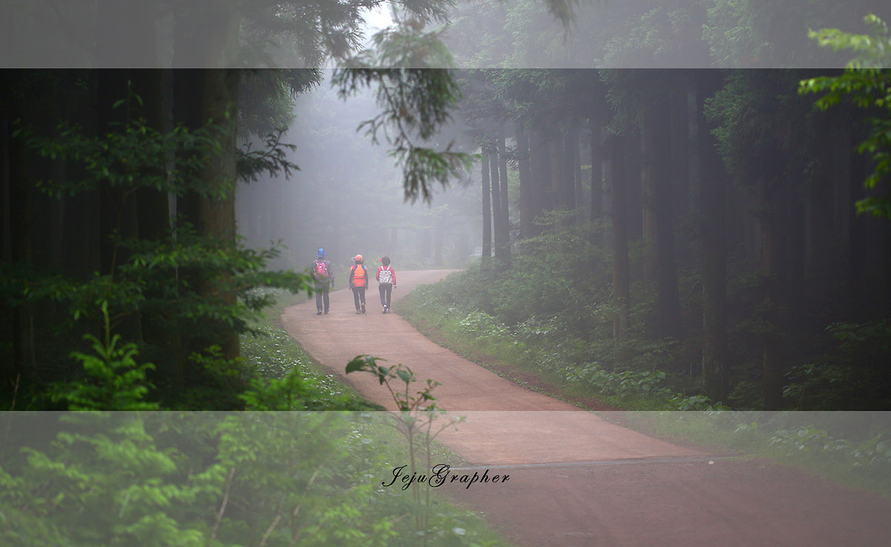 날씨가 좀 좋아질 것을 기대하고 길을 나섰는데, 갈수록 안개가 더 짙어지고 나중에 사려니오름에 올랐을 때는 아래가 완전히 보이지 않았습니다. 덕분에 안개 속을 시원하게 걸을 수 있었습니다.