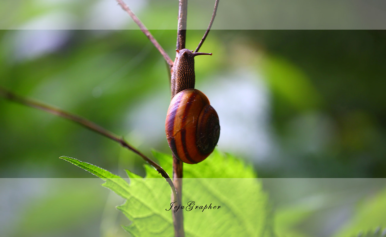 안개 끼고 비가 조금 내려서 달팽이도 바깥 구경하러 나왔습니다. 보통 달팽이는 엄지손톱만한데, 이건 거의 큰 밤송이보다 컸습니다. 지금 모니터로 보는 크기가 실제 크기와 거의 같다고 보시면 됩니다.