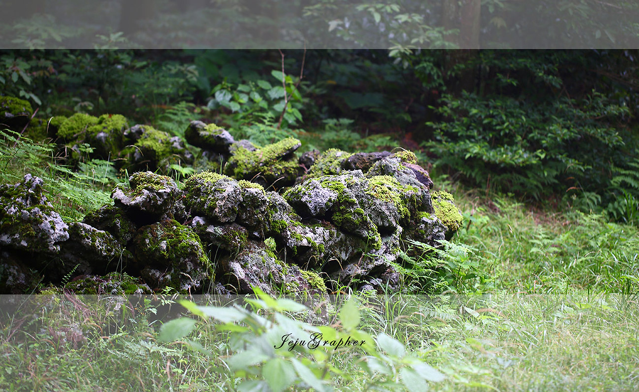 사려니숲길로 3km 정도 들어간 곳인데, 이곳에도 무덤이 있었습니다. 제주에서 무덤이 생소한 것이 아닙니다. 예전에는 고인이 평소 생활하던 집이나 밭 주변에 무덤을 만들고 이렇게 산담을 쌓아뒀습니다. 간혹 사람들이 잘 찾기 어려운 곳에서 이렇게 산담을 보는 경우도 있습니다. 그런데 보통 산담은 각진 마름모형인데, 이 산담은 특이하게 둥글게 쌓아놨습니다.