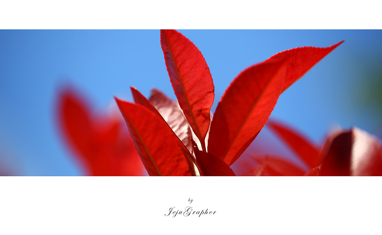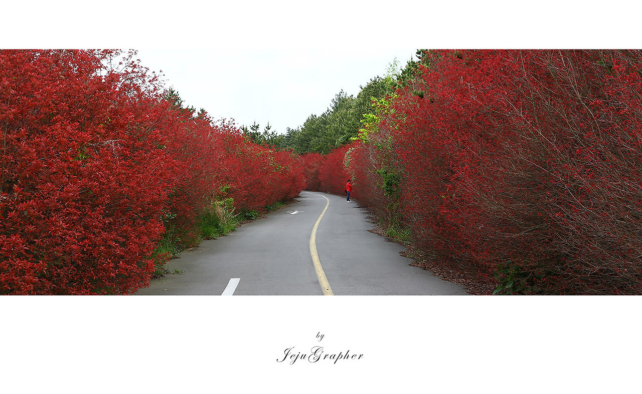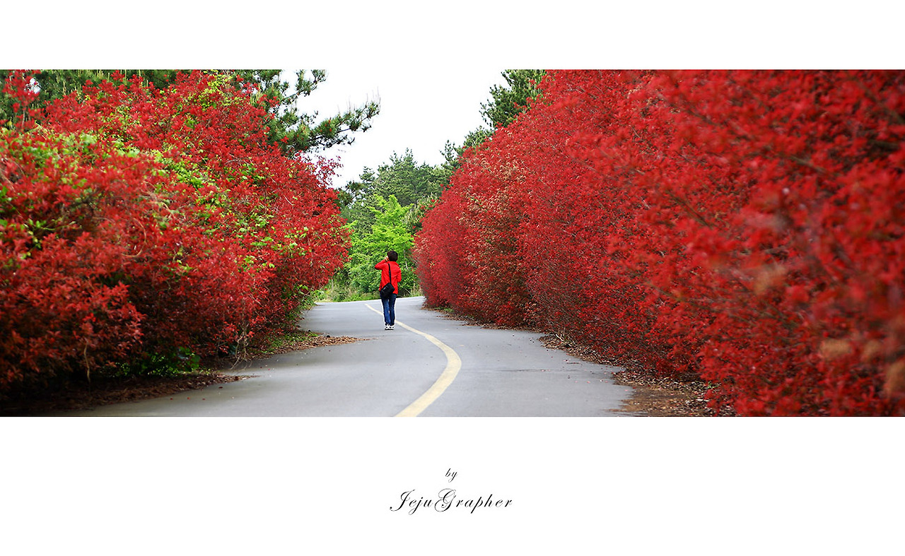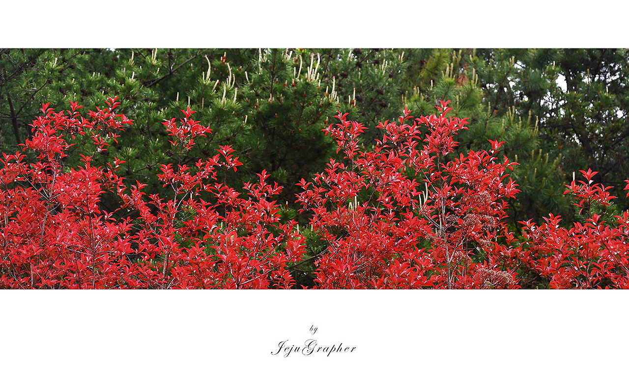 제주도의 가을 단풍은 좀 밋밋하다. 일교차가 크지 않아서 색이 짙지가 않아서 그렇다. 그런데 봄에 제주를 돌아다녀보면 간혹 붉은 단풍나무를 보게 된다. 오히려 봄에 더 붉다. 제주는 참 재미있는 곳이다.