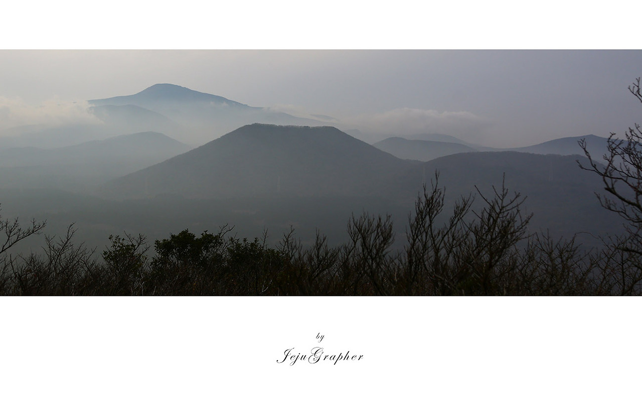한라산 앞쪽으로 물찻오름 (정면)과 말잣오름 (오른쪽)도 볼 수 있다.