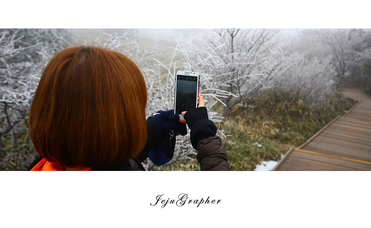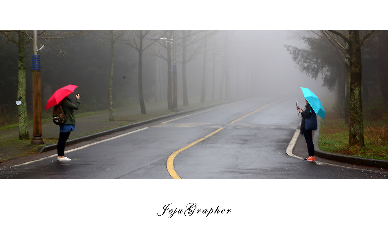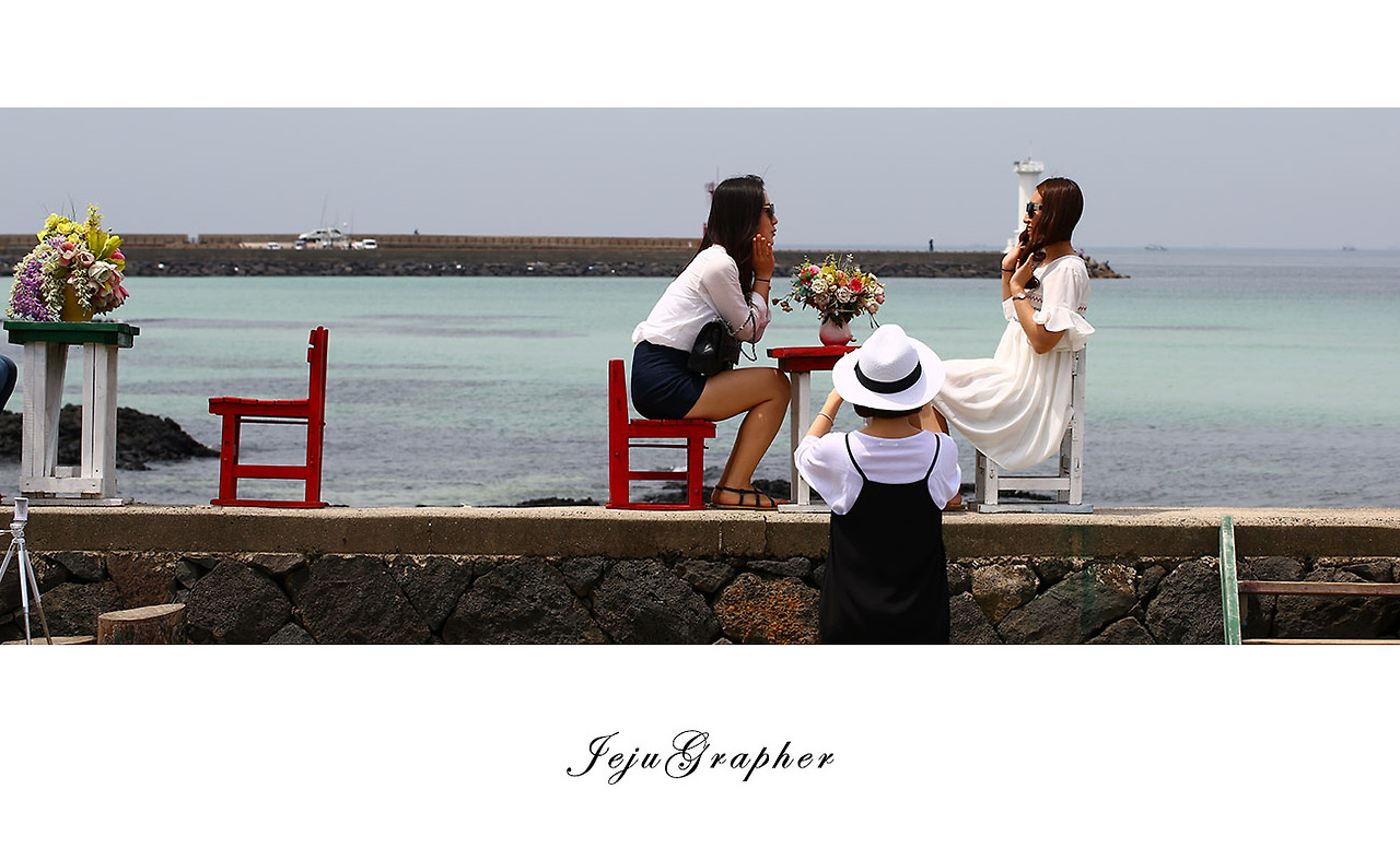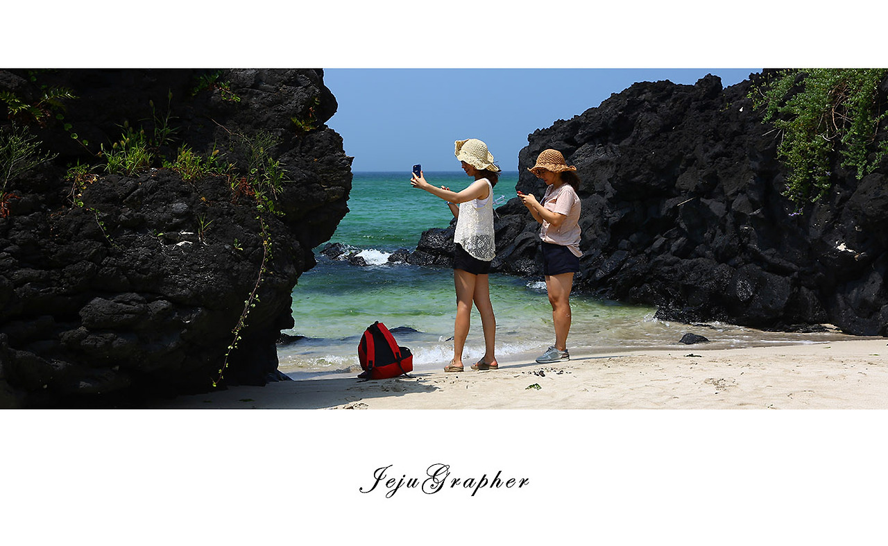 브런치를 통해서 소개했던 웬만한 장소에는 이제 관광객들이 넘쳐납니다. 1~2년 전에는 그나마 입소문으로 찾아온 내국인들 뿐이었지만 이젠 외국인 --이라 적고 중국인이라고 읽는-- 들도 많이 찾아옵니다. 아직은 단체 관광객이 주가 아니라는 것이 그나마 위안이라면 위안입니다. 그래서 온전히 제주의 자연만을 사진에 담을 수가 없습니다. 어쩔 수 없이 제 사진에 지나가는 사람들의 모습이 -- 결국 도촬이지만 -- 담깁니다. 게 중에는 사진을 찍고 있는 사람들이 많습니다. 어차피 보는 눈은 비슷하니 사진을 찍는 스폿도 엇비슷하기 때문인가 봅니다. 이렇게 핑계 대고 있지만, 엄연히 양해를 구하지 않은 몰래카메라이기 때문에 바람직한 행위는 아닙니다. 최근 몇 달 동안 우연히든 의도적으로든 사진을 찍는 사람들을 찍은 사진을 모았습니다.