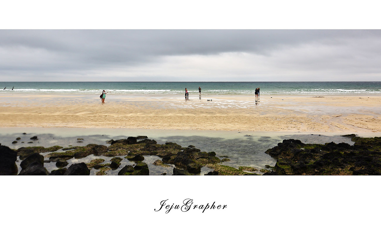 사람들이 세화를 좋아하는 것은 잘 알려진 밥집과 카페가 많이 생겼다는 것도 있지만, 앞에 보이는 바다가 아름답기 때문이다. 특히 맑은 날, 물이 찼을 때 모래톱 위의 물빛은 나의 시선을 거부하지 않는다.