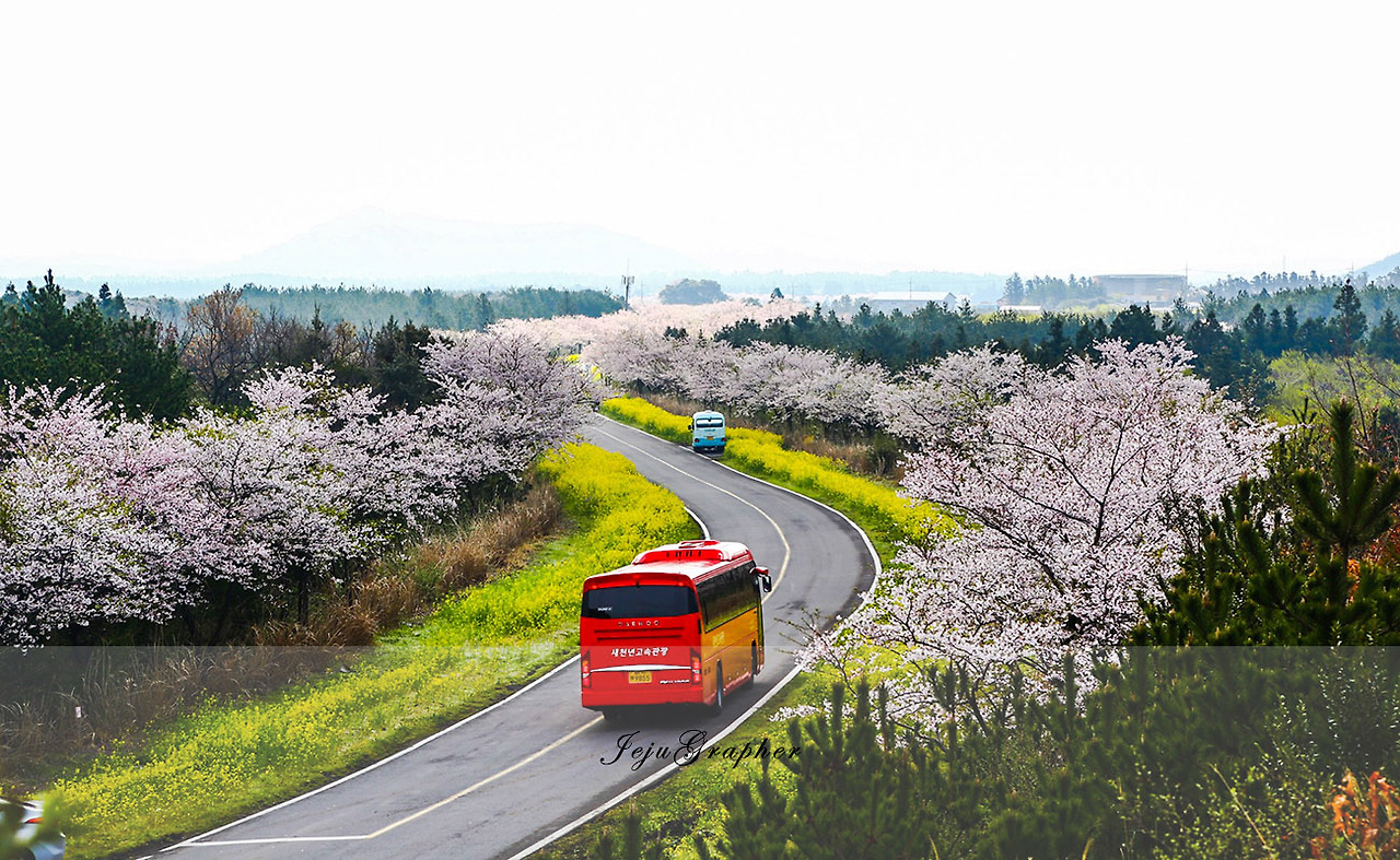 벚꽃과 유채꽃이 함께 핀 녹산로는 봄에 꼭 찾아가 봐야 한다. 아침 일찍 녹산로를 찾았다가 출근 때문에 돌아오는 길에 정석비행장 근처의 낮은 언덕에 사진 찍는 사람들이 몰려있어서 올라가 봤더니 이런 뷰를 보고 있었다.