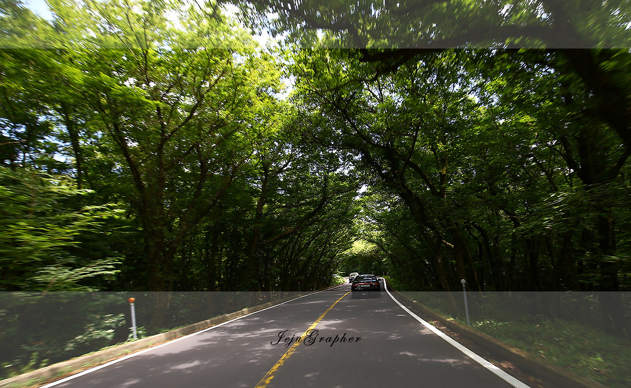 마지막으로 한라산 516도로의 숲터널 사진... 여전히 차를 세워두고 사진을 찍을 수는 없지만, 선루프 위로 카메라만 꺼내놓고 보지 않고 막샷을 눌렀다. 위험하니 이런 짓은 안 해야 하는데...