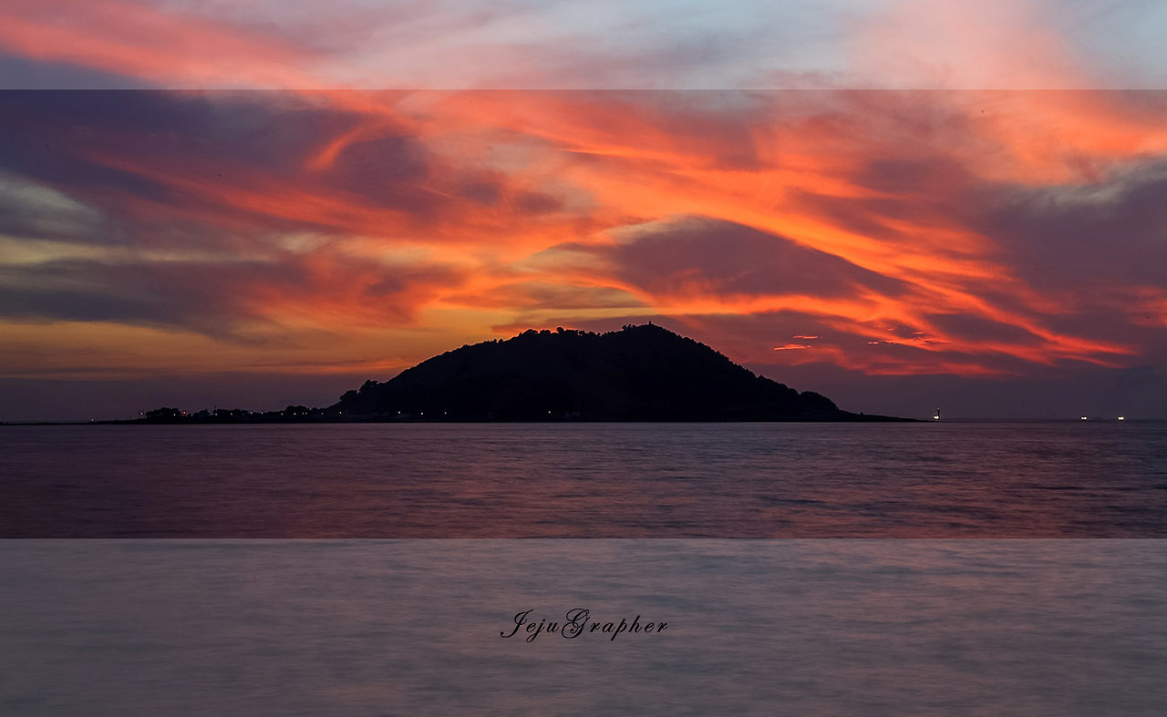 좋은 일몰을 만나는 것이 어렵지만 그나마 일몰 사진은 일출 사진보다는 쉽다. 일출봉 배경의 일출 사진을 찍지 못하니 섬을 배경으로 한 일몰 사진에 대한 욕심이 더 강해진다. 그래서 가끔 한림의 비양도나 한경의 차귀도를 찾는다.