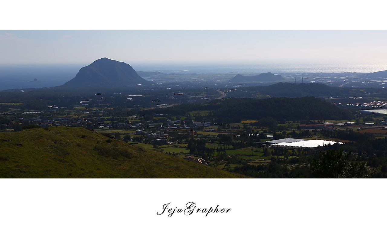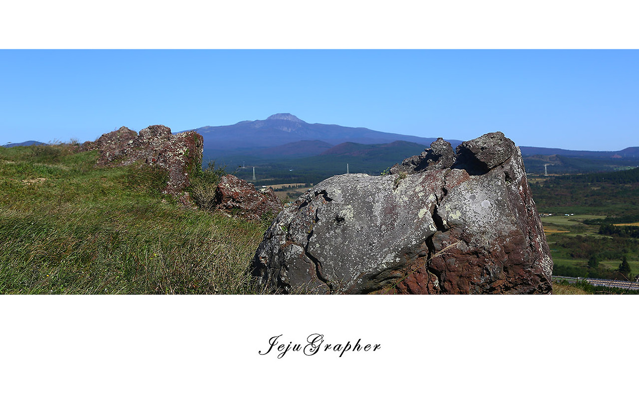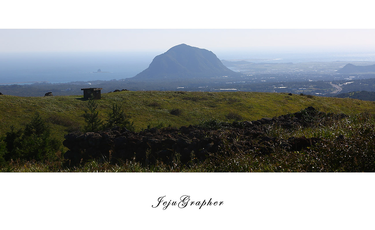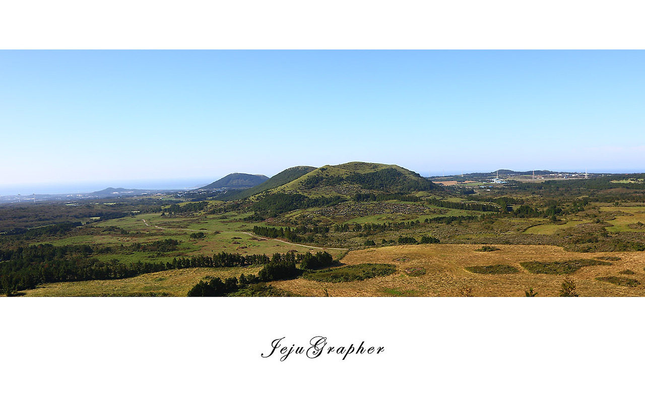 이름이 알려진 주요 오름들은 많이 올라봤고 추천할 오름이 몇 있는데, 그 목록에 원물오름도 추가했으면 한다. 이유는 아래의 사진에서도 볼 수 있듯이 정상에 오르면 남으로는 산방산이 보이고, 동으로는 한라산 정상이 보이고, 서로는 금악오름과 정물오름이 보인다. 북으로는 멀리 새별오름도 보이지만 바로 앞에 공사장이ㅠㅠ 제주에서 권역별로 주요 오름은 올라가볼만하다. 가장 높은 곳에 올라가봐야지 주변을 모두 볼 수 있기 때문이다. 원물오름이 서쪽 권역에 그런 오름에 속한다. 오름이 험하지도 않기 때문에 안덕 충혼묘지 주차장에 차를 세워두고 가볍게 오르면 된다. 원물오름에 오기 전에 먼저 찾아갔던 새별오름에 이젠 관광객들이 너무 많이 찾아와서 그냥 발길을 돌려서 원물오름에서도 가을 억새를 살짝 기대했었는데, 억새도 없는 거의 민둥오름이다.