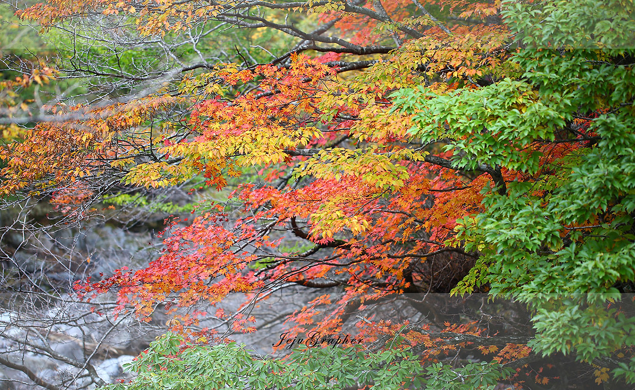 이젠 아침에 춥다고 느낄 만큼 가을을 지나서 겨울의 문턱에 들어섰습니다. 이미 한라산 정상 부근에는 상고대가 목격되기도 했습니다. 하지만 여느 때보다 무더웠던 여름이 길어서 가을 단풍도 평소보다 더 늦게까지 그 색을 유지하고 있습니다. 최근 3주 동안 단풍놀이에 여념이 없었습니다.