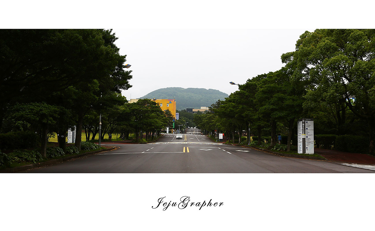 앞쪽으로는 폴리텍 대학과 후문 원룸촌이고, 뒤쪽으로 보이는 곳이 제주대학교 교정입니다.