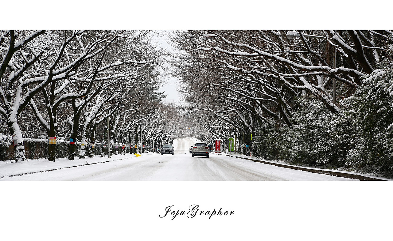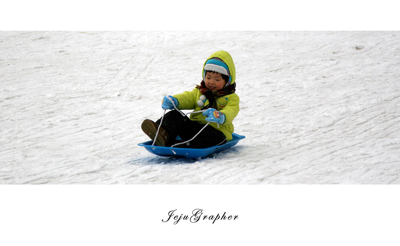 제주에는 스키장이 없습니다. 제주 내려오기 직전 겨울에 스키복도 새로 구입했는데, 딱 한번 입었던 스키복은 여전히 장롱 깊숙이 그대로 있습니다. 제주에 스키장은 없지만, 대신 눈이 내린 후에 여러 곳에 자연 눈썰매장이 생깁니다. 보통은 한라산 마방목지나 산록도로변의 경사진 곳에 눈이 온 후에 차들이 길게 세워져 있습니다. 아이가 있는 집이라면 으레 아이 수만큼 눈썰매를 가지고 있습니다. 그리고 제주대학교 교정의 잔디밭도 경사가 져서 눈이 온 뒤에 반짝 눈썰매장으로 바뀝니다.