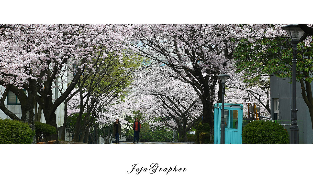 제주 2년차부터 제주대학교 뒤편의 허름한 원룸에서 살고 있습니다. 바로 옆에 대학교 교정이 있지만 차로 빠른 길을 지나갈 뿐 자주 들어가서 시간을 보내지 않습니다. 무더운 여름에 가끔 열기를 식히기 위해서 늦은 밤에 산책하는 경우는 종종 있지만... 포항의 작은 대학교를 다니면서 가끔 이렇게 큰 종합대학의 생활은 어떨까?라는 상상은 해봤지만, 막상 바로 옆에 학교가 있더라도 생활에 바빠서 잘 찾지 않습니다. 봄가을로 정기적으로 열리는 축제 때는 작은 학교에서는 상상도 못 하였던 가수들도 초대하던데, 잠시 짬을 내서 찾아가지도 못했습니다. 그래도 4월에 벚꽃이 필 무렵이면 카메라를 들고 교정을 돌아다닙니다. 그래서 아래에는 교정의 벚꽃 사진이 많습니다.