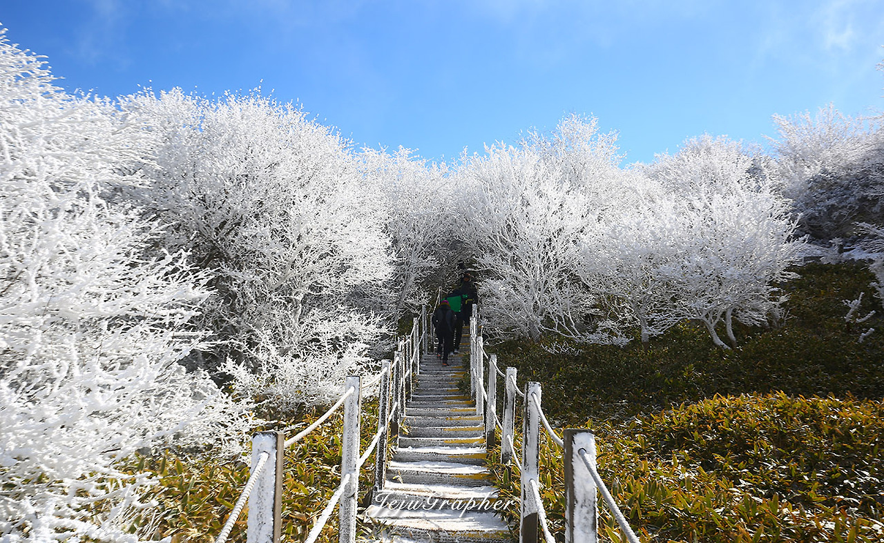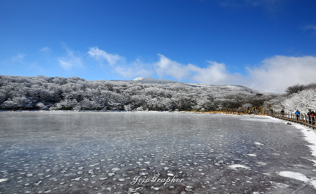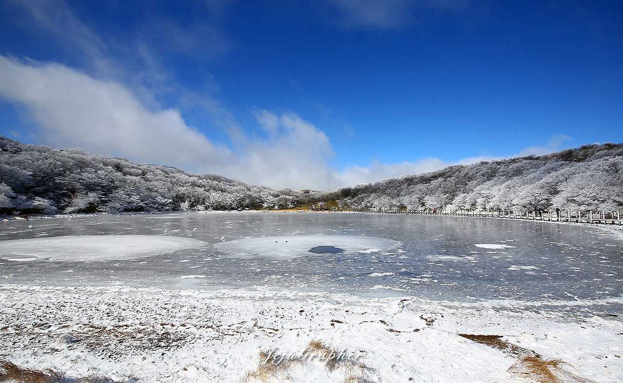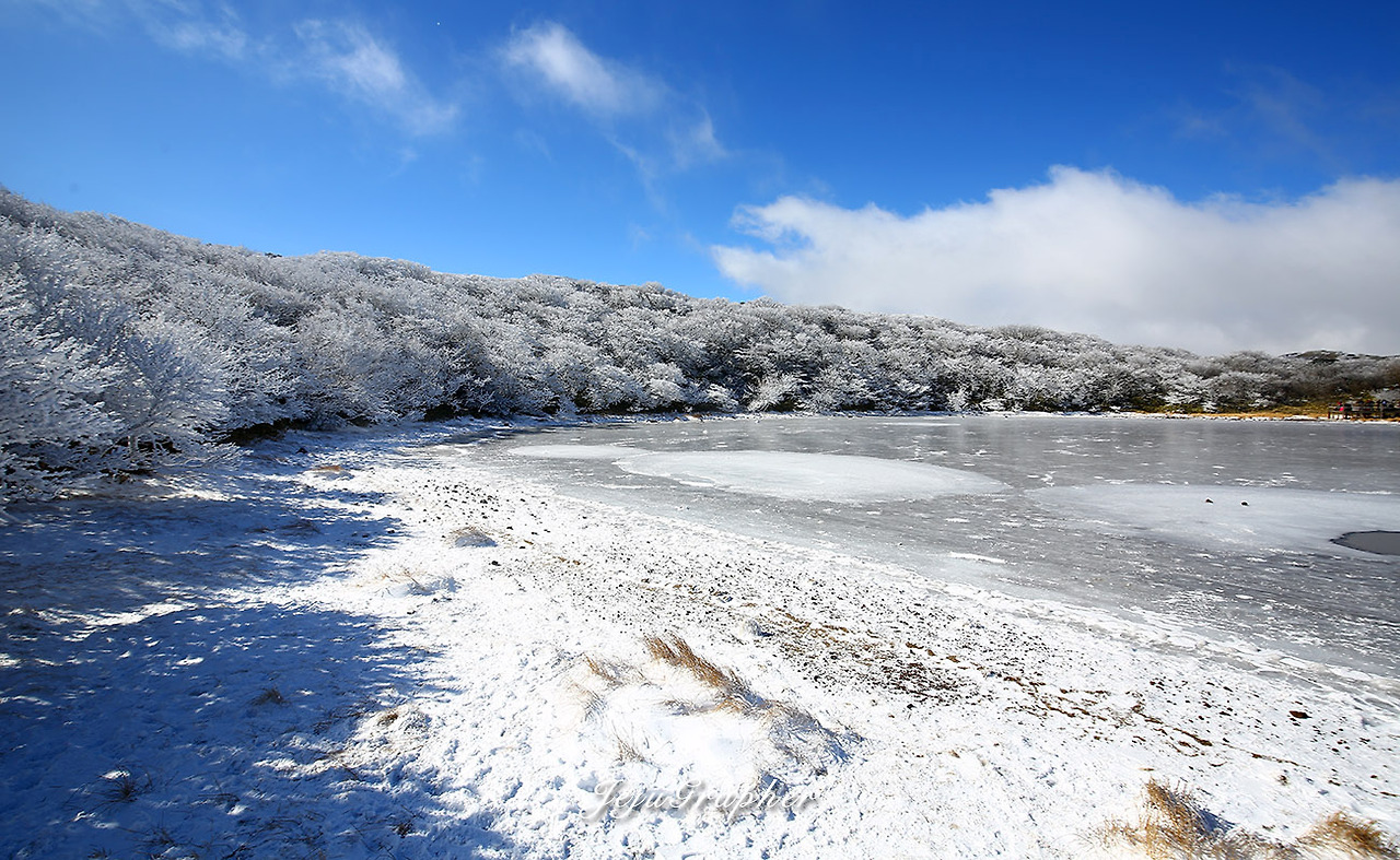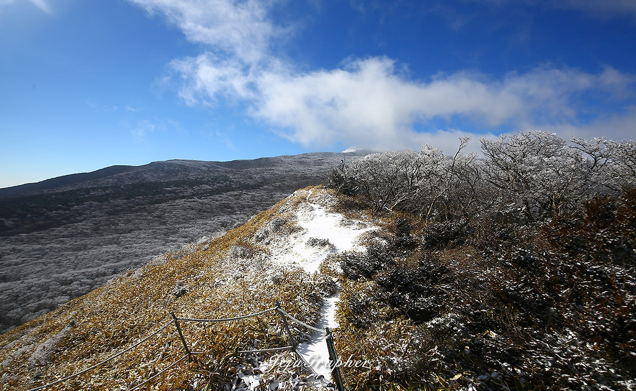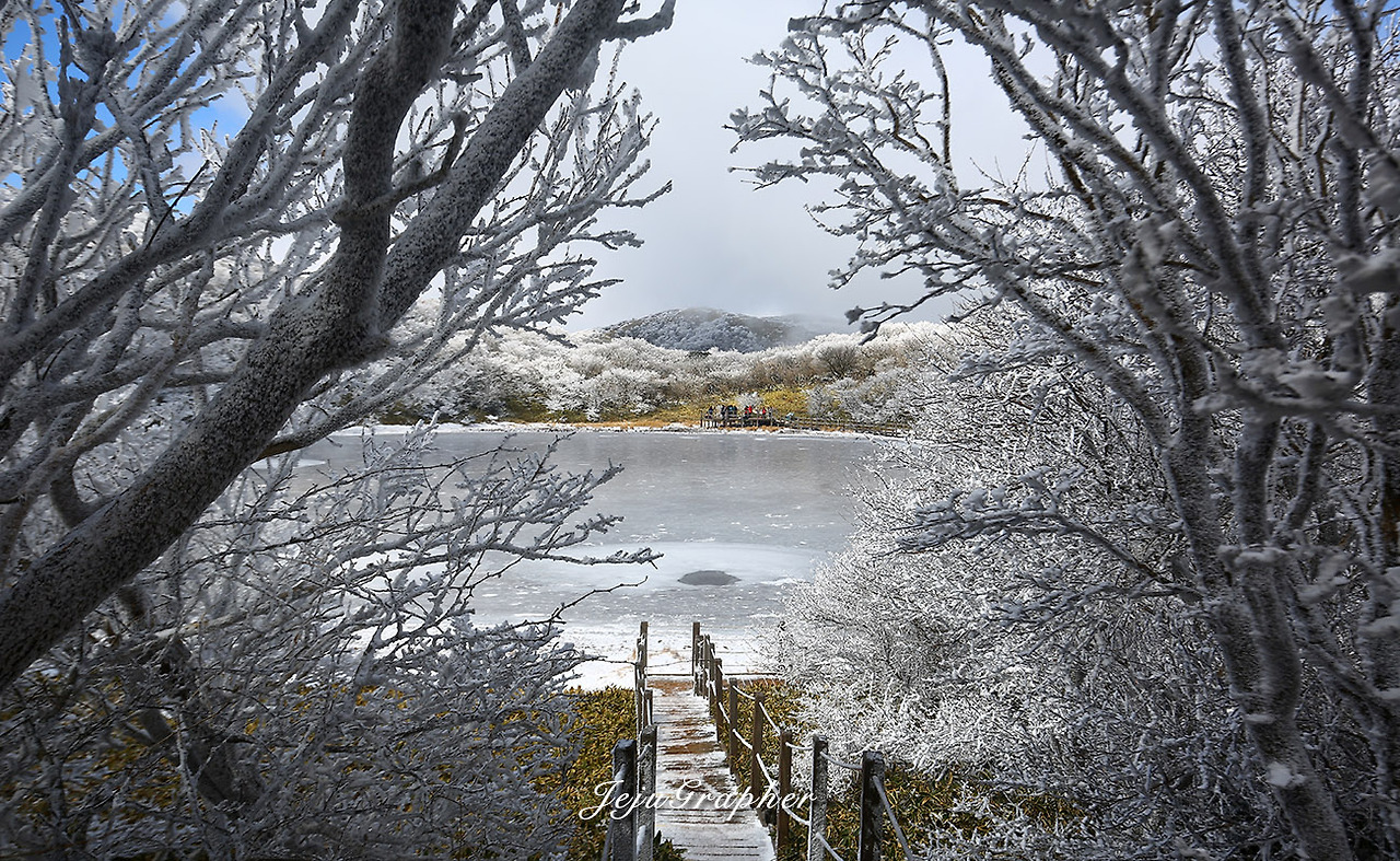 구름 속의 폭설은 참 몽환적이었습니다. 등산로를 벗어나서 산정호수를 거닐던 기억이 여전합니다. 하지만 푸른 하늘을 배경으로 한 상고대의 모습이 계속 그리웠습니다.