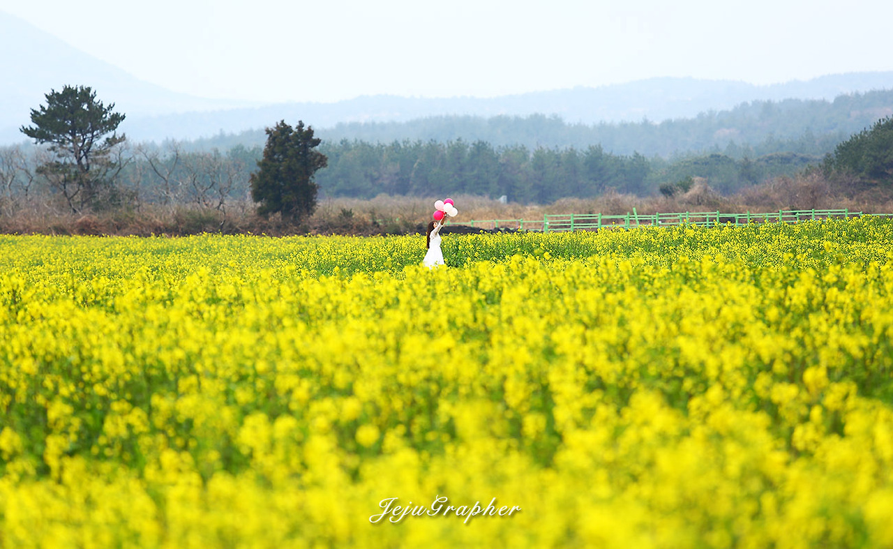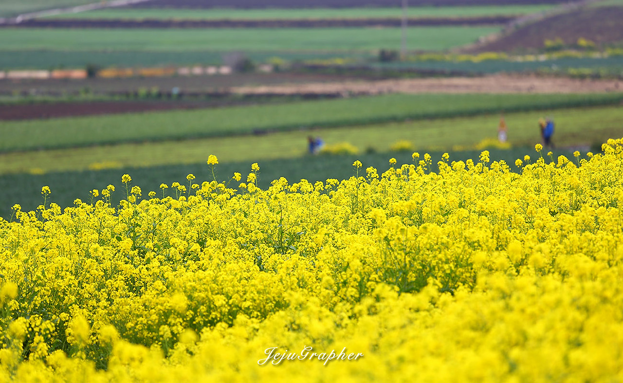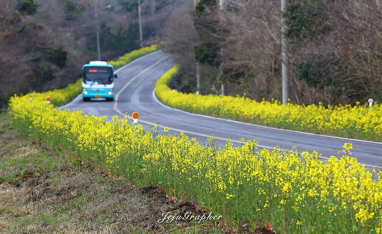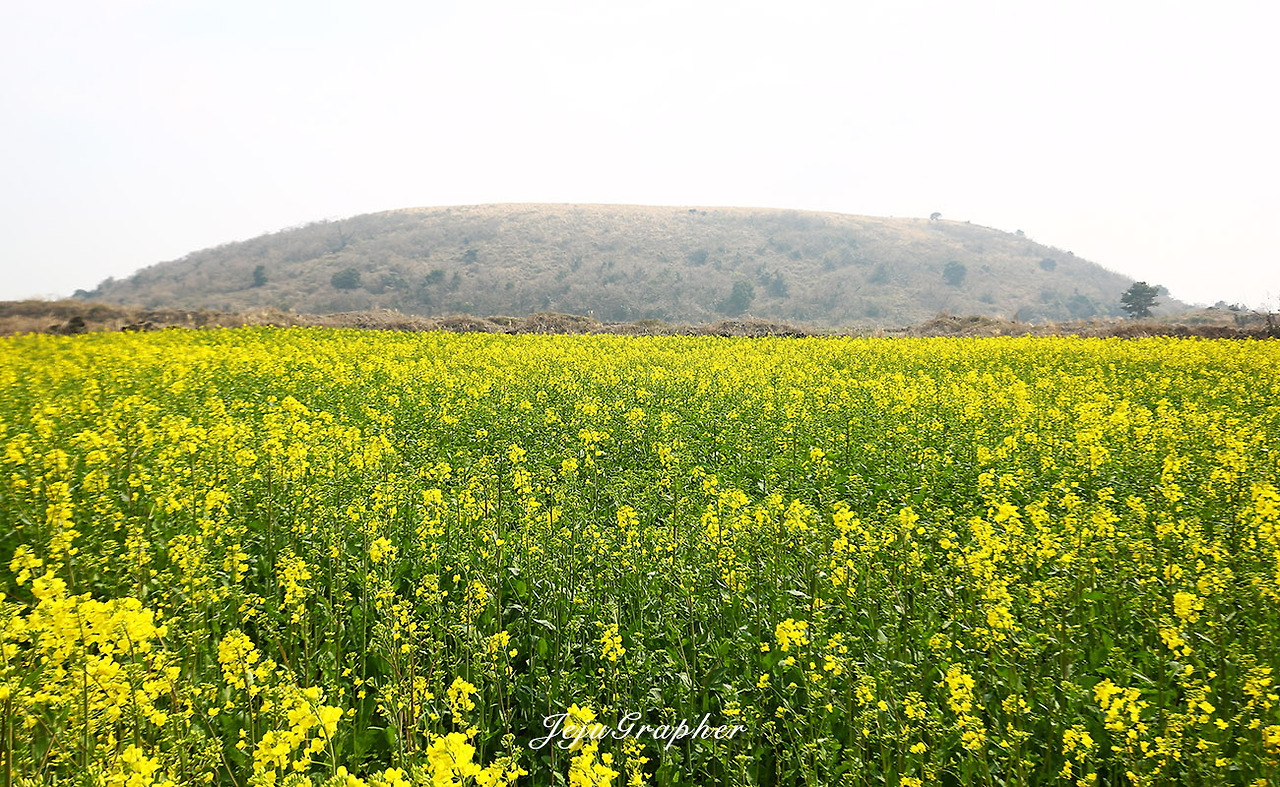 겨울에도 성산의 광치기해변이나 안덕의 산방산 일대에 가면 노란 유채꽃을 볼 수가 있습니다. 하지만 사유지에 심어놓은 유채꽃 사진을 찍으려면 돈을 내야 합니다. 부담스러운 금액은 아니지만 괜히 돈을 내고 사진을 찍고 싶은 마음은 별로 없습니다. 그래서 제주도 곳곳에 유채가 아무렇게나 피는 3월을 기다립니다. 중문관광단지에서 색달해변으로 이어지는 엉덩물계곡에 유채밭이 있다는 얘기를 듣고 바로 찾아갔습니다. 그 후로 고산의 당산봉, 화순곶자왈길, 아끈다랑쉬오름 주변, 그리고 가시리 유채꽃플라자 등으로 유채꽃 사진을 찍으러 다녔습니다. 올해의 백미는 가시리 녹산로 옆으로 넓게 가꾼 유채밭이었습니다.