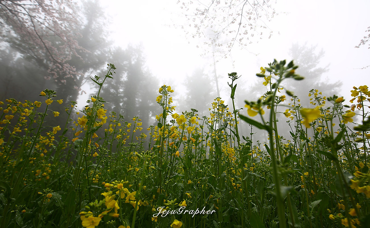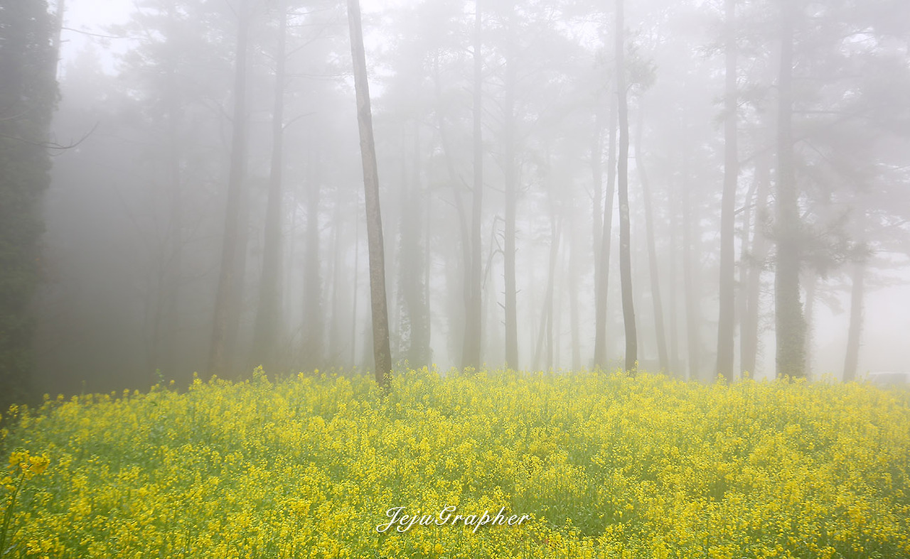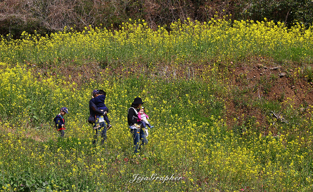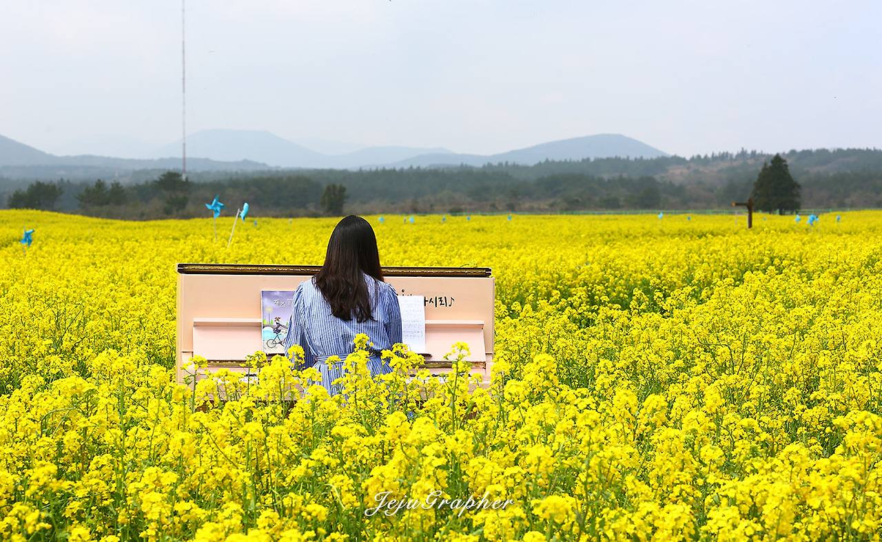 겨울에도 성산의 광치기해변이나 안덕의 산방산 일대에 가면 노란 유채꽃을 볼 수가 있습니다. 하지만 사유지에 심어놓은 유채꽃 사진을 찍으려면 돈을 내야 합니다. 부담스러운 금액은 아니지만 괜히 돈을 내고 사진을 찍고 싶은 마음은 별로 없습니다. 그래서 제주도 곳곳에 유채가 아무렇게나 피는 3월을 기다립니다. 중문관광단지에서 색달해변으로 이어지는 엉덩물계곡에 유채밭이 있다는 얘기를 듣고 바로 찾아갔습니다. 그 후로 고산의 당산봉, 화순곶자왈길, 아끈다랑쉬오름 주변, 그리고 가시리 유채꽃플라자 등으로 유채꽃 사진을 찍으러 다녔습니다. 올해의 백미는 가시리 녹산로 옆으로 넓게 가꾼 유채밭이었습니다.
