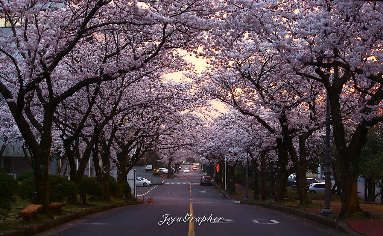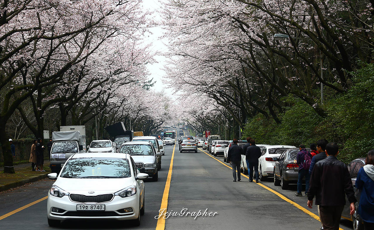 순서대로 제주대학교 교정 (04.07 아침), 제주대 앞길 (04.07 아침), KCTV 앞길 (04.05), 전농로 (04.04), 제대 앞, KCTV 앞, 제대 교정 (04.07 저녁), 제대 앞 (04.07 점심)입니다. 4월 7일은 제주대를 아침, 점심, 저녁으로 3번이나 찾아갔습니다. 제주시에서 나름 벚꽃이 일찍 피는 대흘리에도 4월 2일에서야 겨우 꽃망울을 터뜨리기 시작했고, 이후로 전농로와 제주대학교 등으로 벚꽃이 만개했습니다. 전농로는 왕벚꽃축제가 열리는 대표적인 장소인데, 올해에는 축제일에 맞춰서 꽃이 피지 않아서 망했습니다. 교통을 통제한 주말 낮도 도로를 활보하면 꽃구경하기에 좋지만 밤에는 양 옆으로 소원을 담은 청사초롱을 켜놔서 또 다른 운치를 더합니다. 작년에는 제주도 전역의 벚꽃을 감상했는데 KCTV 앞길의 벚꽃 사진을 찍지 못해서 1년을 기다려서 사진을 찍었습니다. 대신 상춘객들이 몰린 제주대와 녹산로의 사진은 예년에 비해서 거의 찍지 못했습니다.