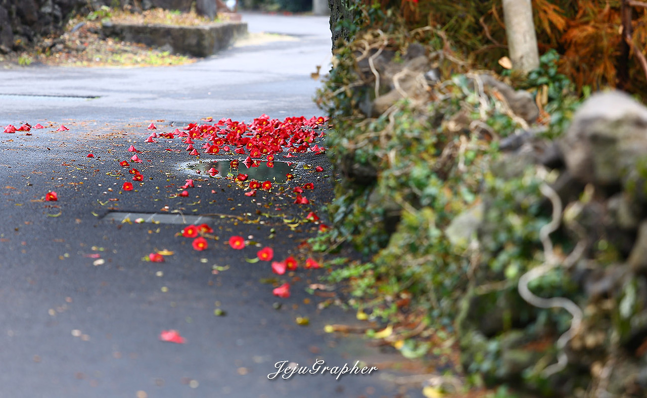 동백은 겨울 꽃으로 알려졌지만 제주도에는 봄까지 붉은 동백을 볼 수 있습니다. 최근 잘 알려진 위미리의 동백군락지는 12월이 절정이어서 지금은 꽃이 다 떨어졌지만, 나무마다 꽃이 피는 시기가 다 달라서 제주의 곳곳을 누비다 보면 늦은 봄에도 아름답게 핀 또는 낙화한 동백을 볼 수 있습니다.