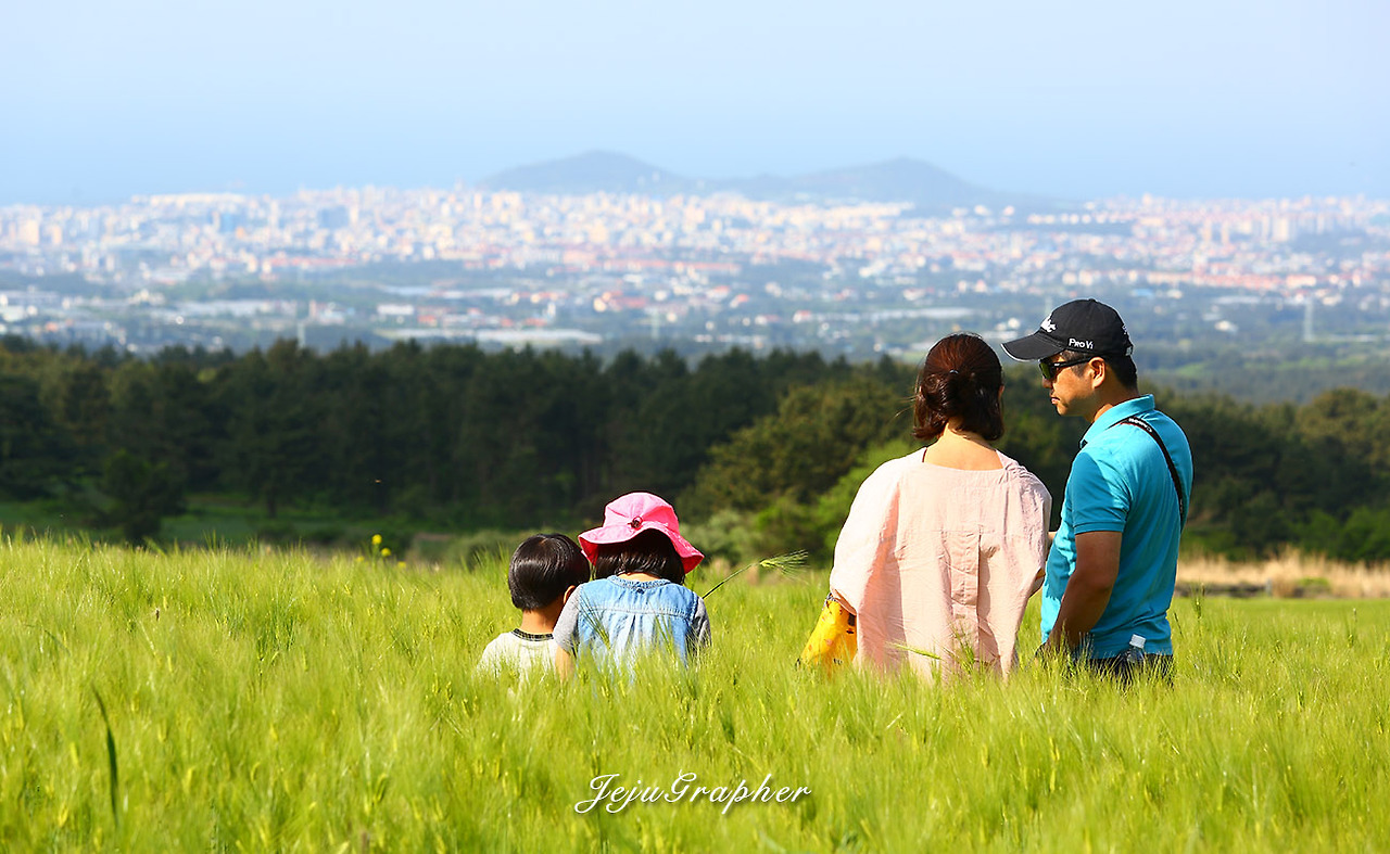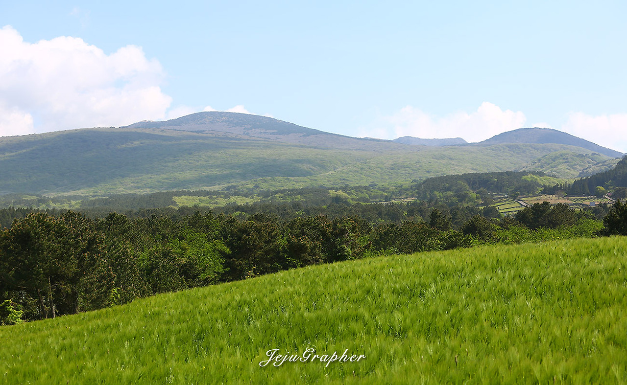 한라산 중산간에 넓은 보리밭이 있습니다. 편의상 오라보리밭으로 부르겠습니다. 25만 평의 넓은 경사진 평지에 보리를 파종한 곳입니다. 가을에는 하얀 메밀꽃으로 뒤덮이는 곳인데, 봄에는 초록의 청보리가 자라는 곳입니다. 가파도나 고도가 낮은 지역은 이미 황금색 보리로 바뀌었지만 오라보리밭은 높은 곳에 위치해서 여전히 푸릅니다. 나름 혼자만 아는 곳인데 작년 가을부터 일부 개방하기 시작했고, 올봄에는 아예 도로 옆 울타리도 걷어내고 주차장까지 만들어서 사람들이 쉽게 알아보고 접근할 수 있게 됐습니다. 그리고 한라산 황금보리축제라는 이름으로 한 달 동안 개방해놨습니다. 올해는 가파도에 배 타고 들어가서 청보리를 구경하지 못해서 이곳에서 보리 구경을 실컷 할 생각이었는데, 이렇게 개방해서 사람들이 많이 찾아오는 장소가 될 줄은 미처 생각지 못했습니다.