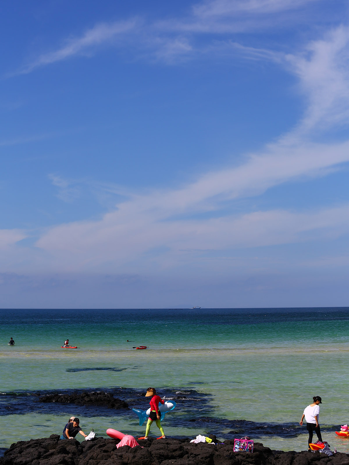 조천해안도로를 따라서 함덕서우봉해변까지 갔습니다. 물이 빠졌을 때가 더 아름답지만 날씨가 좋을 때의 함덕은 여느 외국의 해변과 다르지 않습니다.