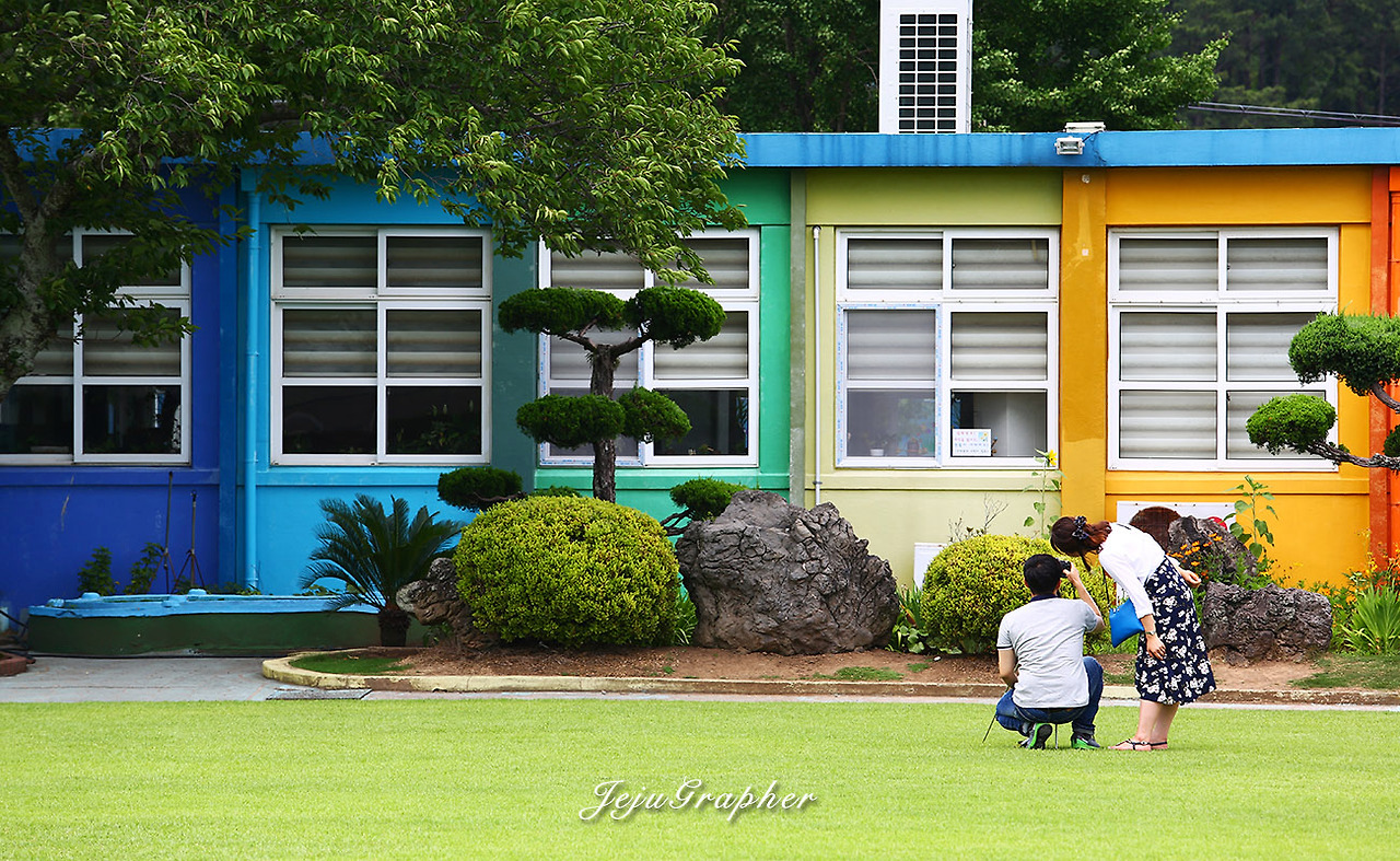 개구리 왕눈이가 금세 뛰쳐나올 것 같은 연화지를 지나서 더럭분교에 잠시 들렀습니다. 광고 때문에 유명해진 학교지만, 이젠 색이 많이 바랬습니다. 찾아오는 광광객수에 비례해서 여러 피해사례도 늘어납니다. 교통은 늘 혼잡합니다. 돌아오는 길에는 민원 때문에 경찰차도 출현해서 불법 주정차된 차들을 몰아냅니다. 학교 갓길로 다니고 잔디밭에는 들어가지 말라는 경고 문구가 붙어있지만 그런 것이 무시된 지는 오래입니다.