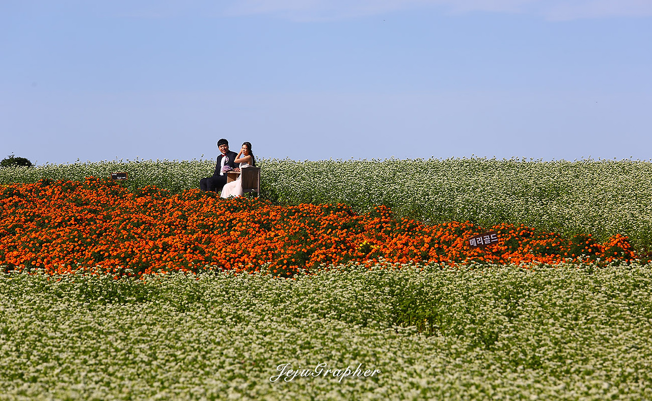 추석 연휴가 시작되는 전날은 회사에서 일찍 퇴근해서 제주의 한 곳을 가서 시간을 보내오는 것이 벌써 5년째입니다. (이전 글 참조: https://brunch.co.kr/@jejugrapher/171) 올해는 보롬왓에 다녀왔는데 예쁘게 핀 메밀꽃 사이로 웨딩 촬영하는 커플들이 많았습니다.